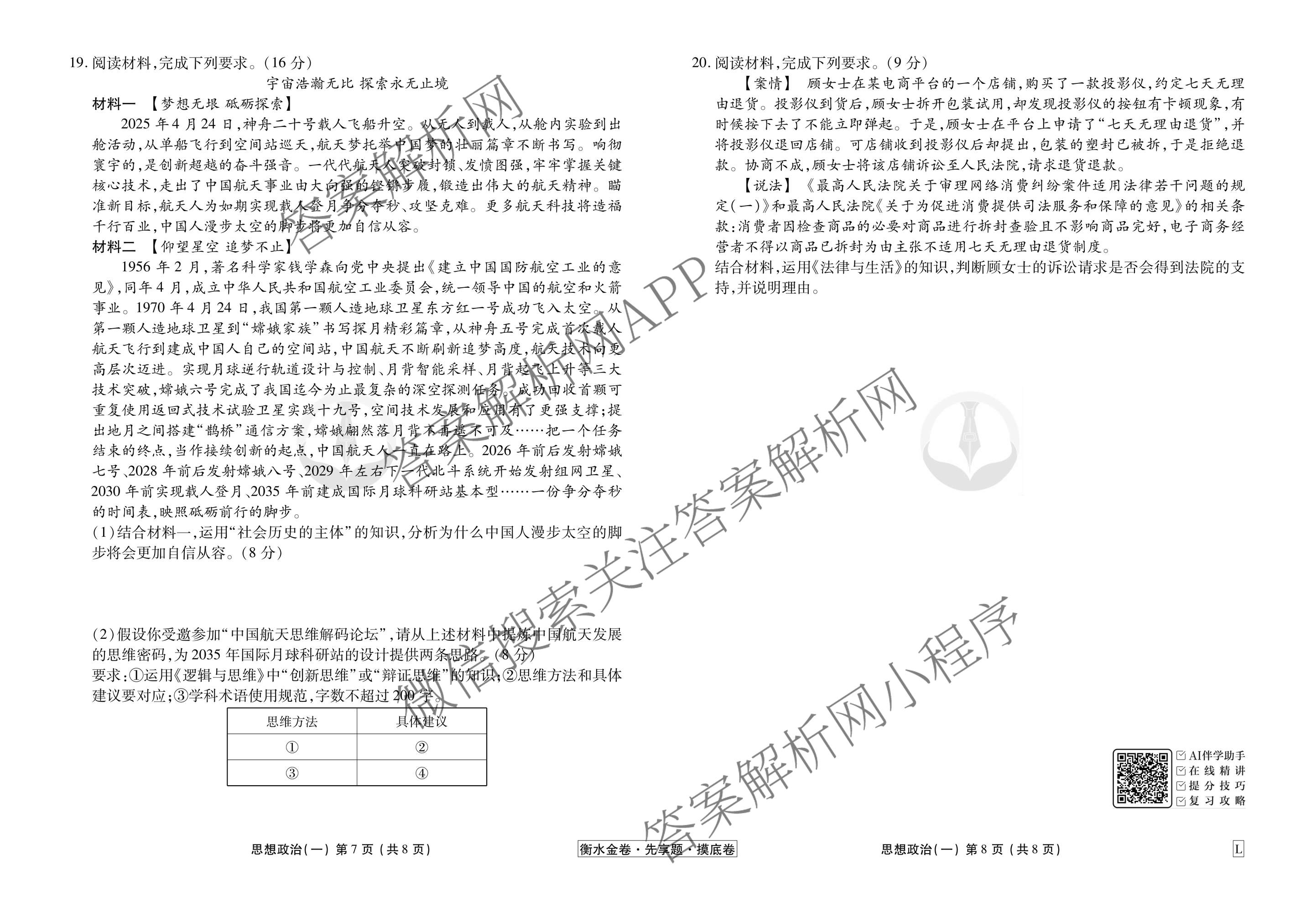 衡水金卷先享题·摸底卷2025-2026学年度高三一轮复习摸底测试卷(一)1政治(L)试题,目前衡水金卷先享题答案网已经汇总了衡水金卷先享题·摸底卷2025-2026学年度高三一轮复习摸底测试卷(一)1政治(L)试题的各科答案和试卷,获取更多衡水金卷先享题答案解析,请在关注本站。