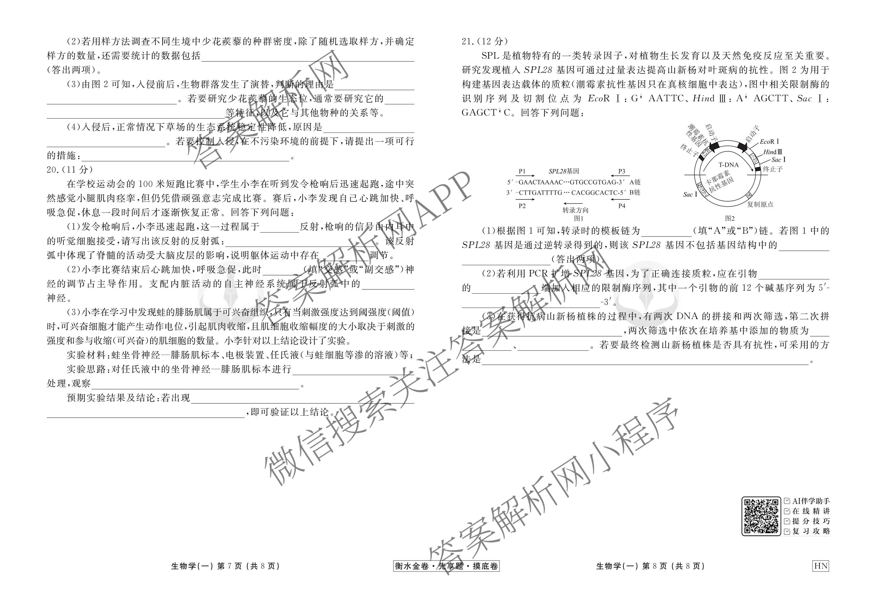 衡水金卷先享题·摸底卷2025-2026学年度高三一轮复习摸底测试卷(一)1生物(HN)试题,目前衡水金卷先享题答案网已经汇总了衡水金卷先享题·摸底卷2025-2026学年度高三一轮复习摸底测试卷(一)1生物(HN)试题的各科答案和试卷,获取更多衡水金卷先享题答案解析,请在关注本站。