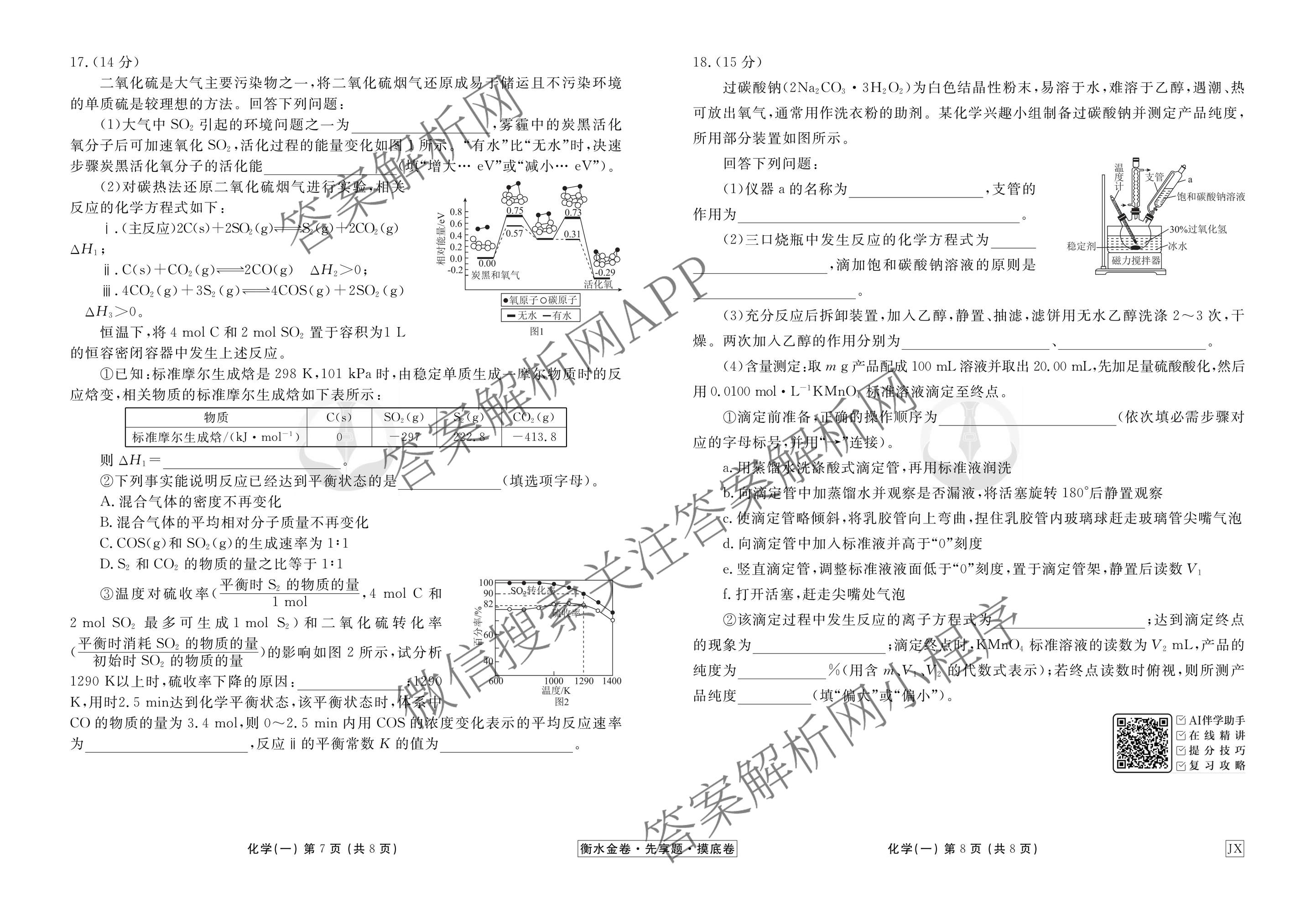 - [衡水金卷先享题]摸底卷2025~2026学年度(高三)一轮复习摸底测试卷(一)1化学(S)答案