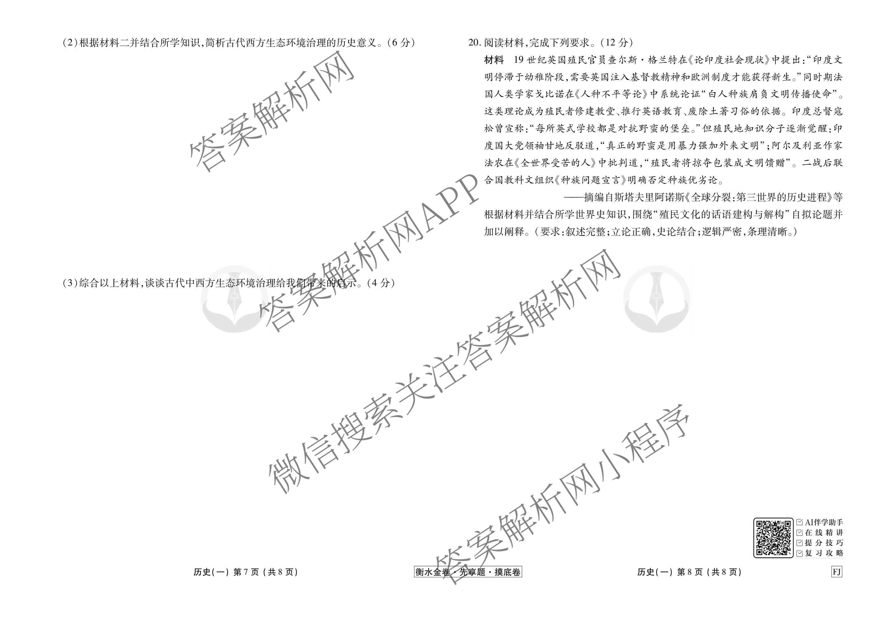 - 2025-2026衡水金卷先享题摸底卷学年度[高三]一轮复习摸底测试卷(一)1历史(HN)试题