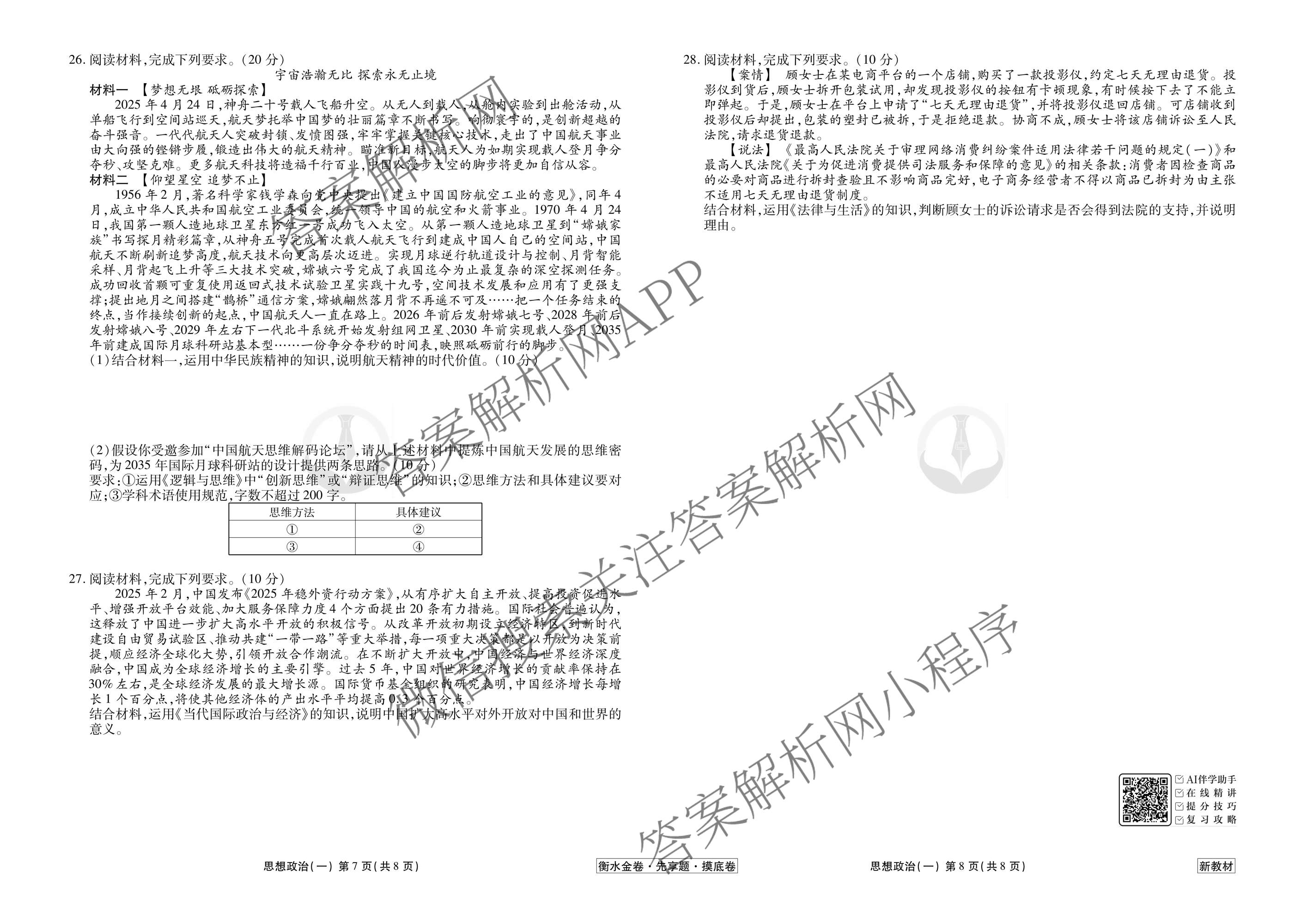 衡水金卷先享题·摸底卷2025-2026学年度高三一轮复习摸底测试卷(一)1政治(新教材)试题,目前衡水金卷先享题答案网已经汇总了衡水金卷先享题·摸底卷2025-2026学年度高三一轮复习摸底测试卷(一)1政治(新教材)试题的各科答案和试卷,获取更多衡水金卷先享题答案解析,请在关注本站。