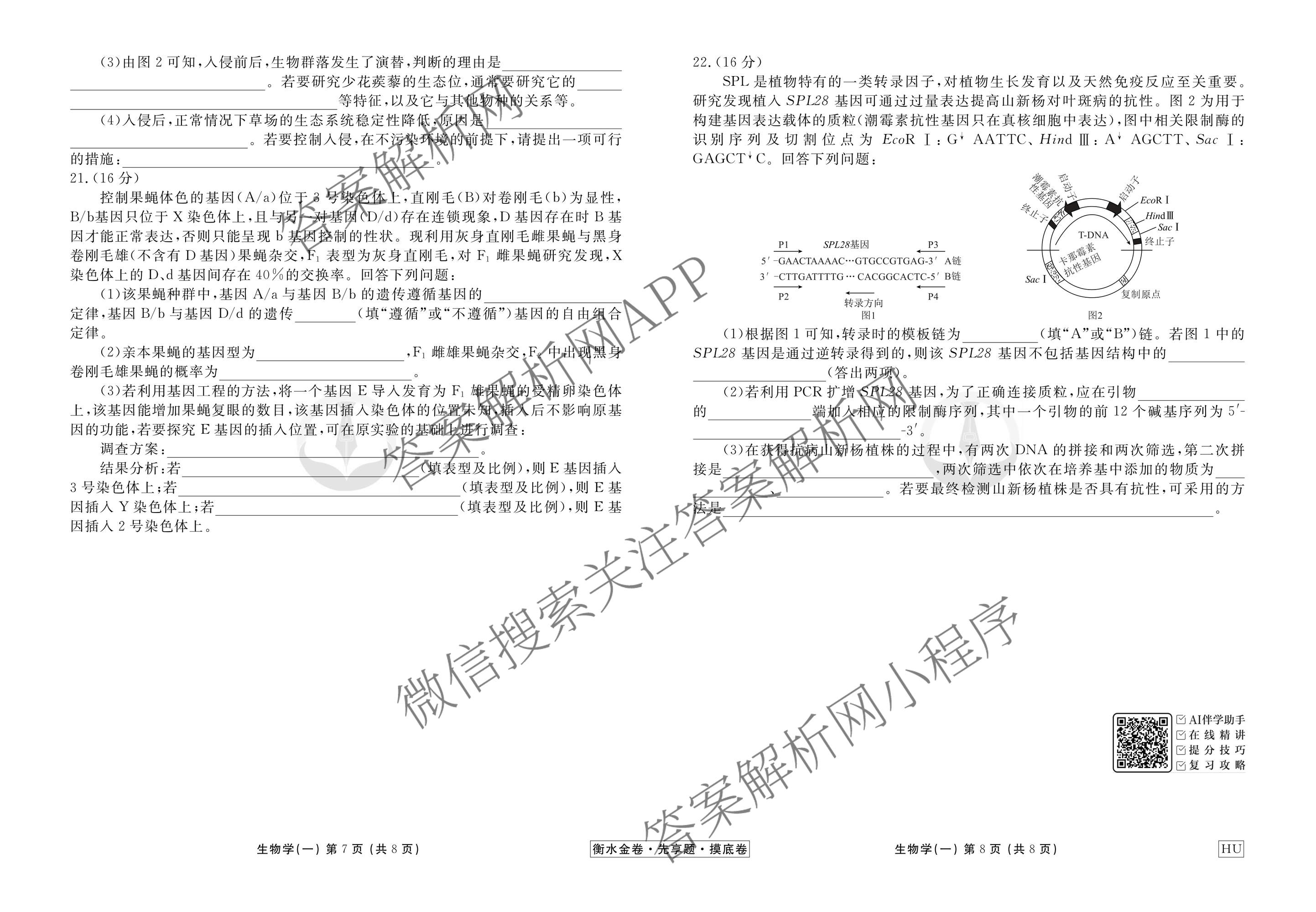 衡水金卷先享题·摸底卷2025-2026学年度高三一轮复习摸底测试卷(一)1生物(HU)试题,目前衡水金卷先享题答案网已经汇总了衡水金卷先享题·摸底卷2025-2026学年度高三一轮复习摸底测试卷(一)1生物(HU)试题的各科答案和试卷,获取更多衡水金卷先享题答案解析,请在关注本站。