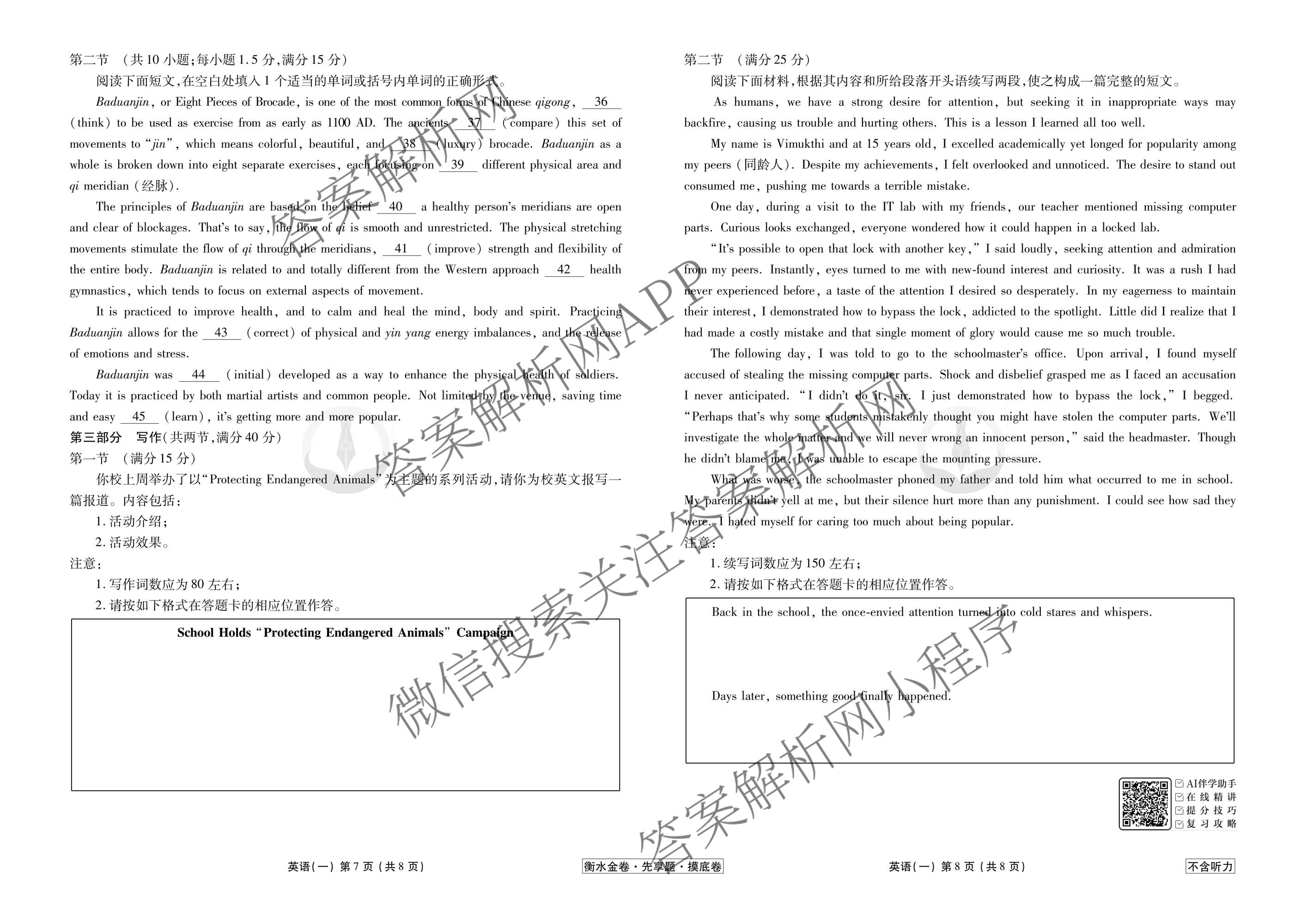 衡水金卷先享题·摸底卷2025-2026学年度高三一轮复习摸底测试卷(一)1英语(不含听力)试题,目前衡水金卷先享题答案网已经汇总了衡水金卷先享题·摸底卷2025-2026学年度高三一轮复习摸底测试卷(一)1英语(不含听力)试题的各科答案和试卷,获取更多衡水金卷先享题答案解析,请在关注本站。