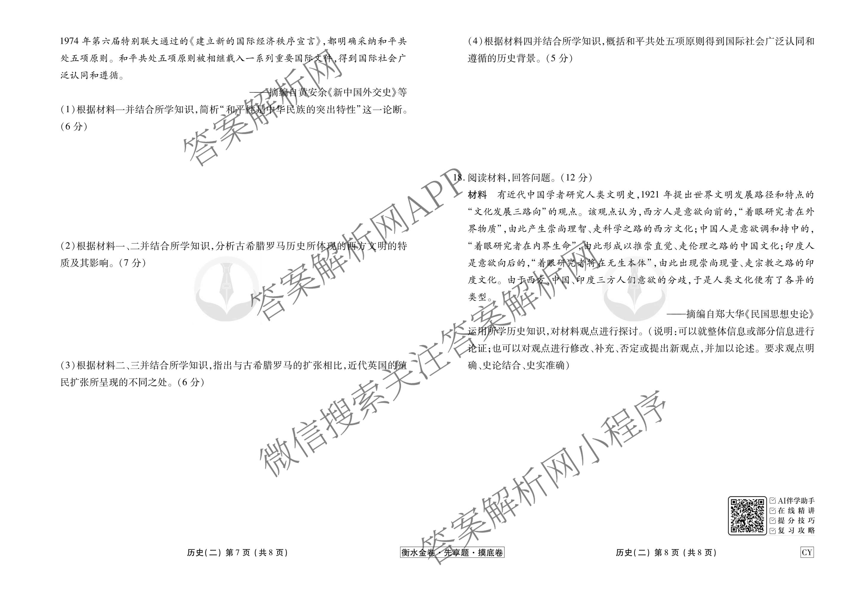 衡水金卷先享题·摸底卷2025-2026学年度高三一轮复习摸底测试卷(二)2历史(CY)试题,目前衡水金卷先享题答案网已经汇总了衡水金卷先享题·摸底卷2025-2026学年度高三一轮复习摸底测试卷(二)2历史(CY)试题的各科答案和试卷,获取更多衡水金卷先享题答案解析,请在关注本站。