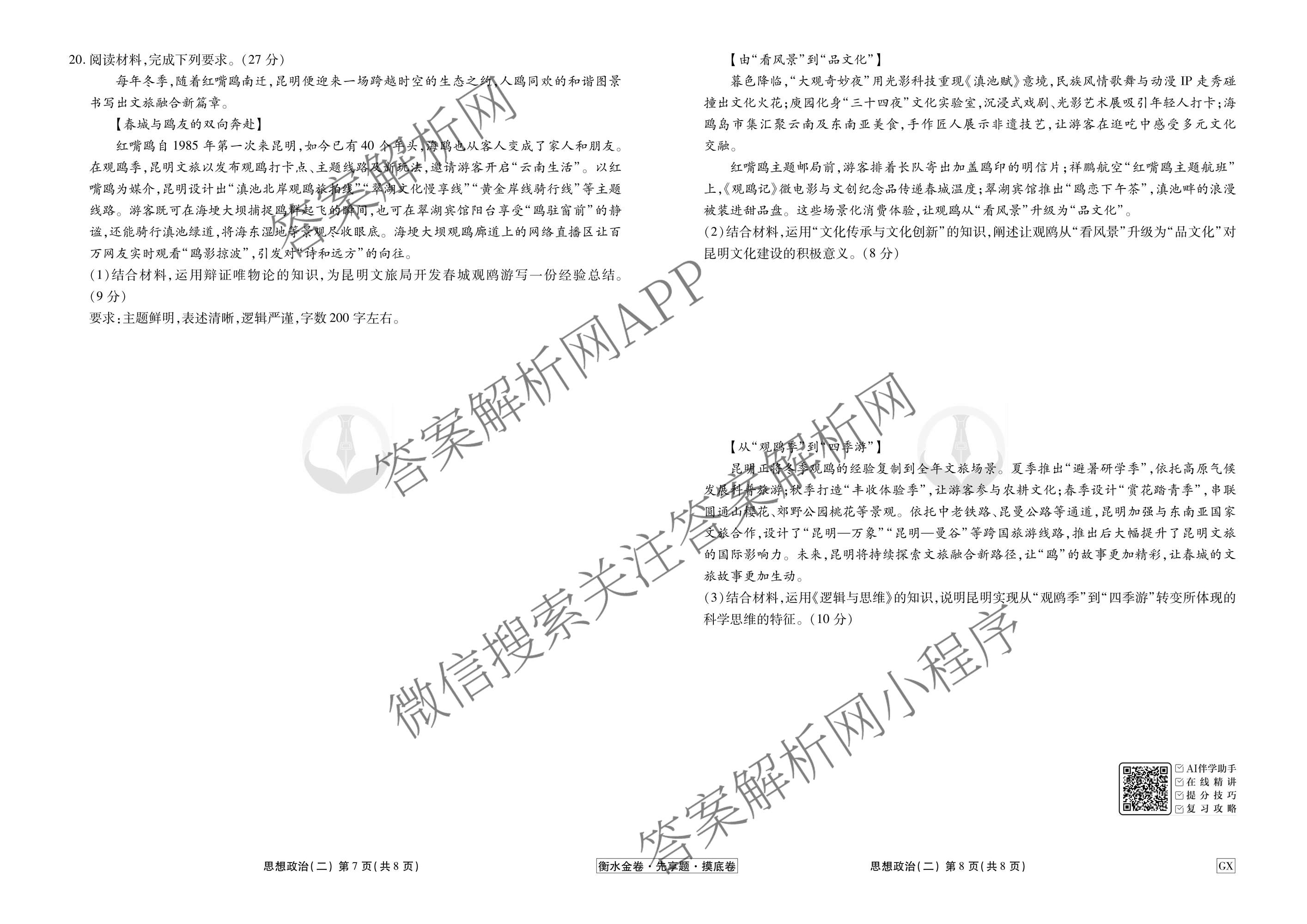 衡水金卷先享题·摸底卷2025-2026学年度高三一轮复习摸底测试卷(二)2政治(GX)试题,目前衡水金卷先享题答案网已经汇总了衡水金卷先享题·摸底卷2025-2026学年度高三一轮复习摸底测试卷(二)2政治(GX)试题的各科答案和试卷,获取更多衡水金卷先享题答案解析,请在关注本站。