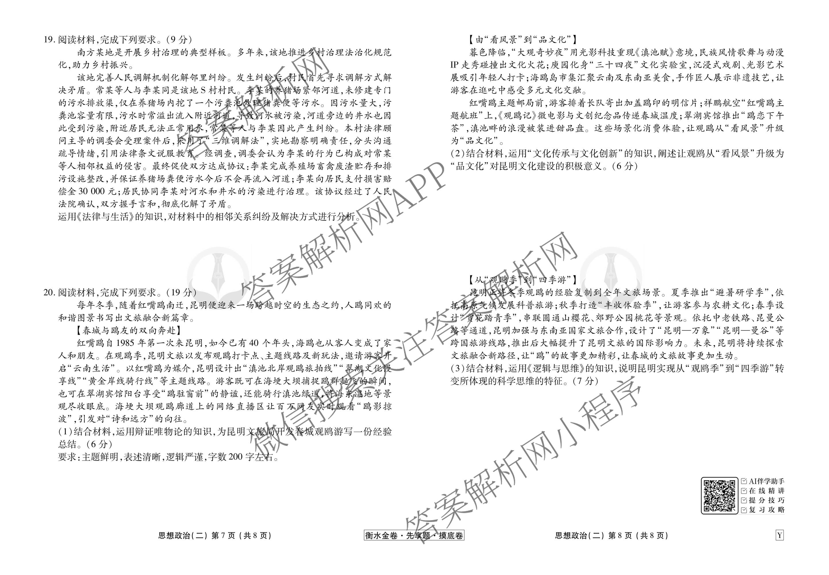 衡水金卷先享题·摸底卷2025-2026学年度高三一轮复习摸底测试卷(二)2政治(Y)试题,目前衡水金卷先享题答案网已经汇总了衡水金卷先享题·摸底卷2025-2026学年度高三一轮复习摸底测试卷(二)2政治(Y)试题的各科答案和试卷,获取更多衡水金卷先享题答案解析,请在关注本站。