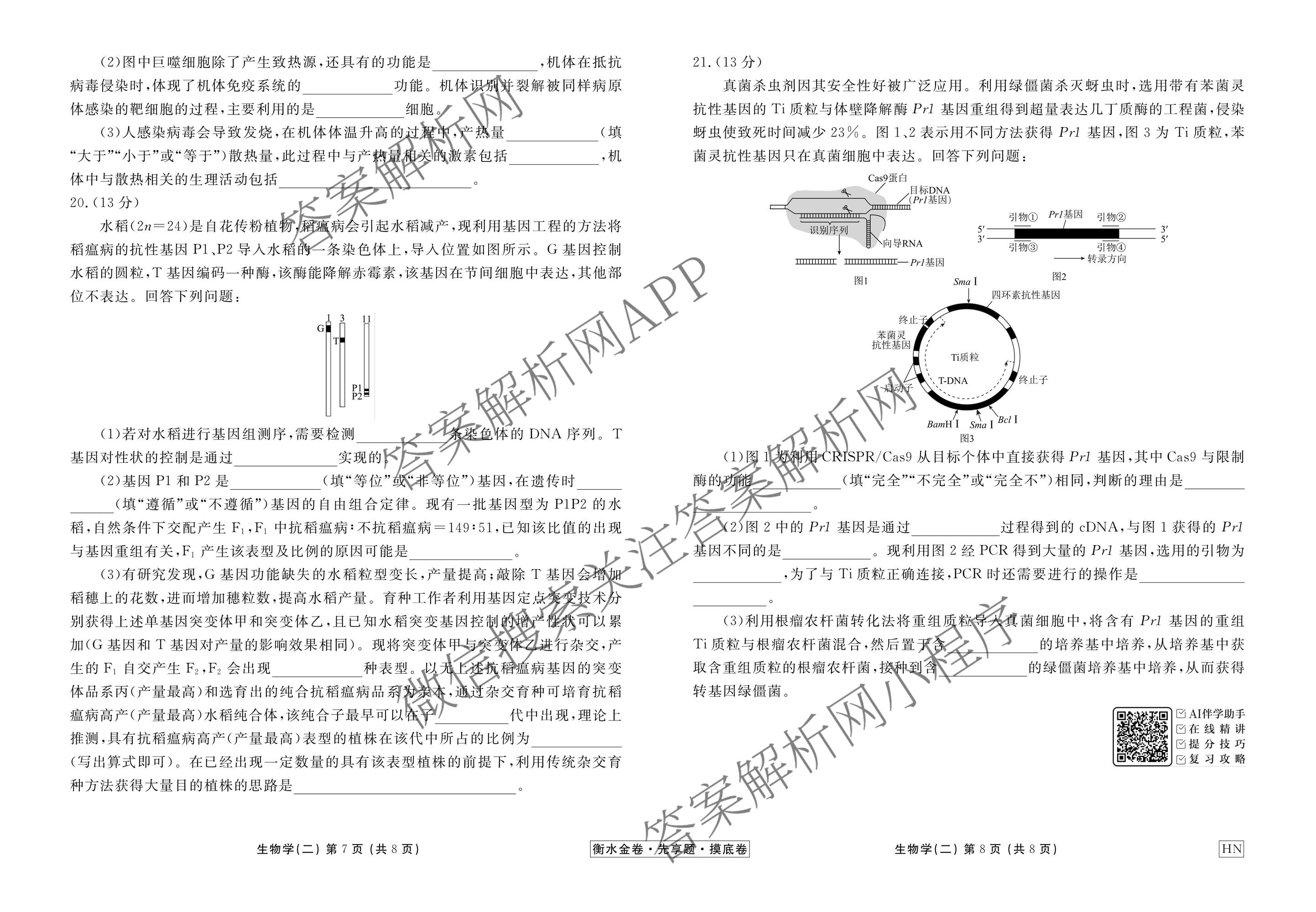衡水金卷先享题·摸底卷2025-2026学年度高三一轮复习摸底测试卷(二)2生物(HN)试题,目前衡水金卷先享题答案网已经汇总了衡水金卷先享题·摸底卷2025-2026学年度高三一轮复习摸底测试卷(二)2生物(HN)试题的各科答案和试卷,获取更多衡水金卷先享题答案解析,请在关注本站。