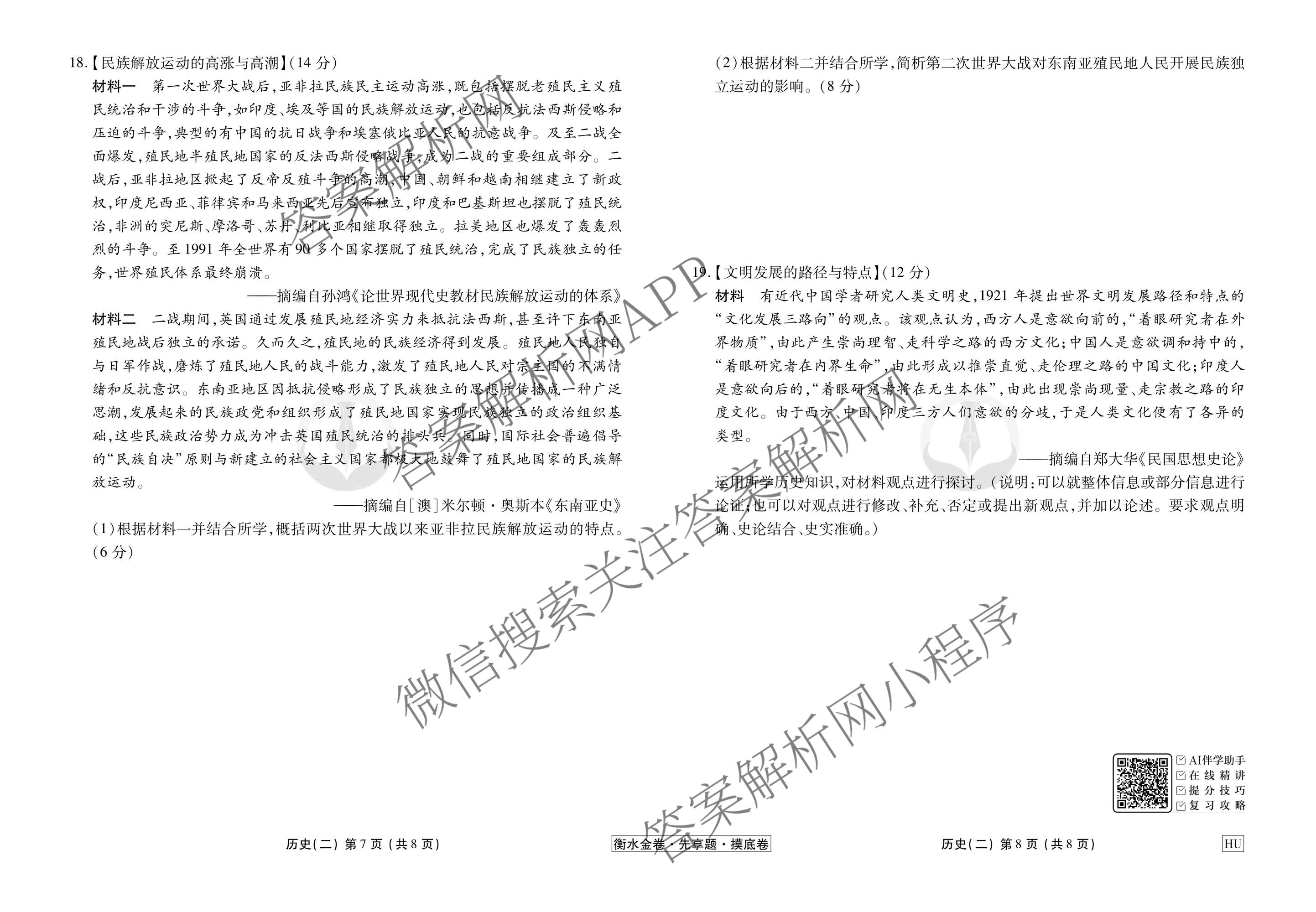 衡水金卷先享题·摸底卷2025-2026学年度高三一轮复习摸底测试卷(二)2历史(HU)试题,目前衡水金卷先享题答案网已经汇总了衡水金卷先享题·摸底卷2025-2026学年度高三一轮复习摸底测试卷(二)2历史(HU)试题的各科答案和试卷,获取更多衡水金卷先享题答案解析,请在关注本站。