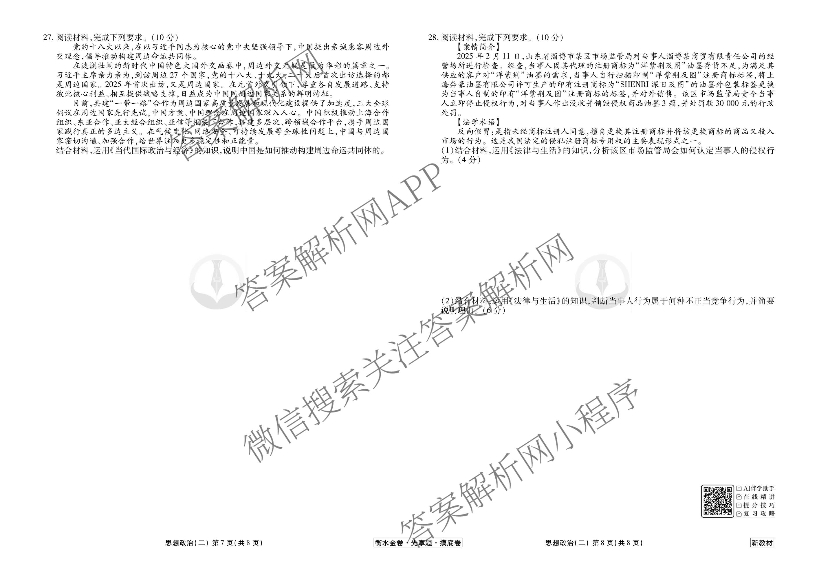 衡水金卷先享题·摸底卷2025-2026学年度高三一轮复习摸底测试卷(二)2政治(新教材)试题,目前衡水金卷先享题答案网已经汇总了衡水金卷先享题·摸底卷2025-2026学年度高三一轮复习摸底测试卷(二)2政治(新教材)试题的各科答案和试卷,获取更多衡水金卷先享题答案解析,请在关注本站。
