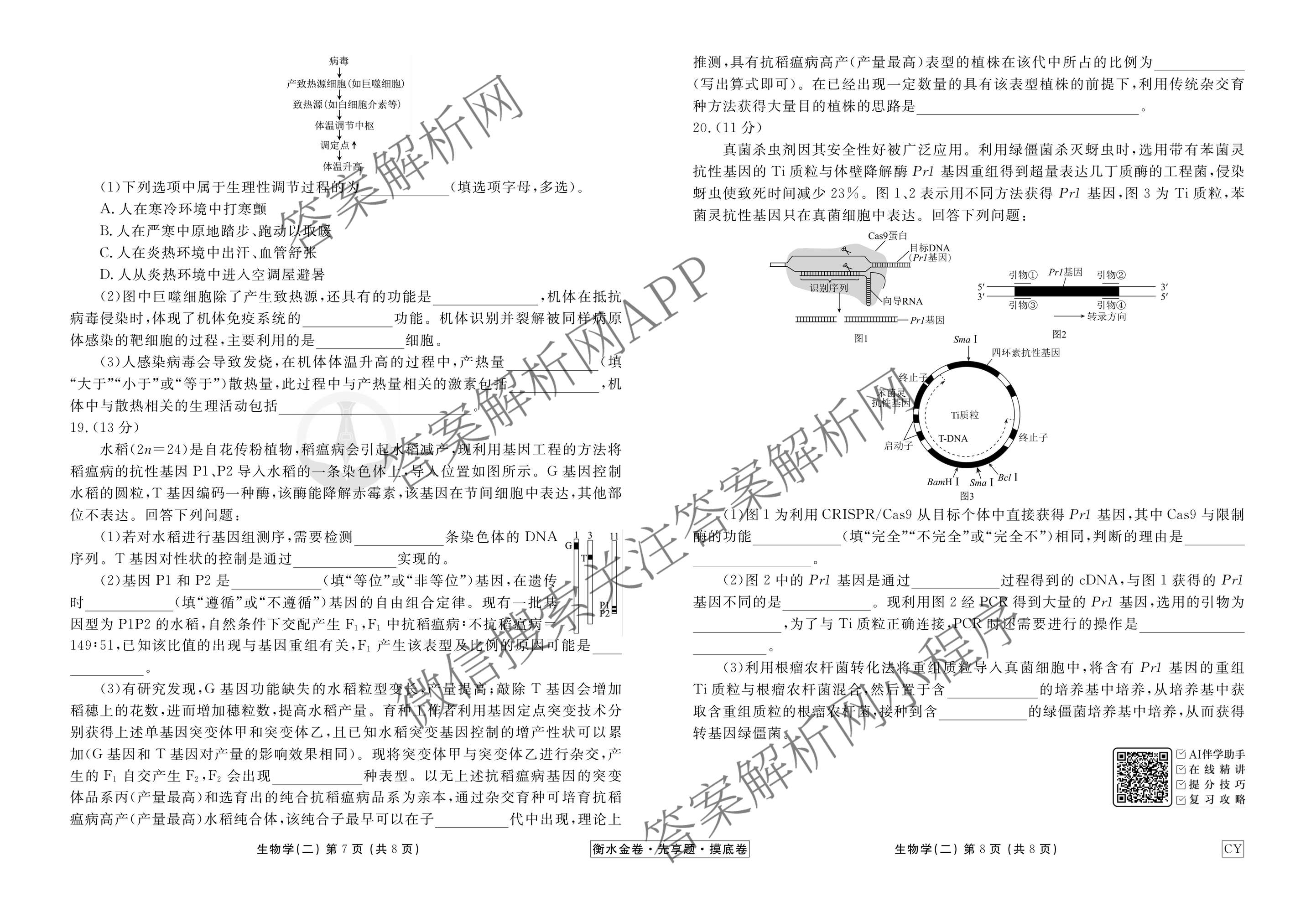 衡水金卷先享题·摸底卷2025-2026学年度高三一轮复习摸底测试卷(二)2生物(CY)试题,目前衡水金卷先享题答案网已经汇总了衡水金卷先享题·摸底卷2025-2026学年度高三一轮复习摸底测试卷(二)2生物(CY)试题的各科答案和试卷,获取更多衡水金卷先享题答案解析,请在关注本站。