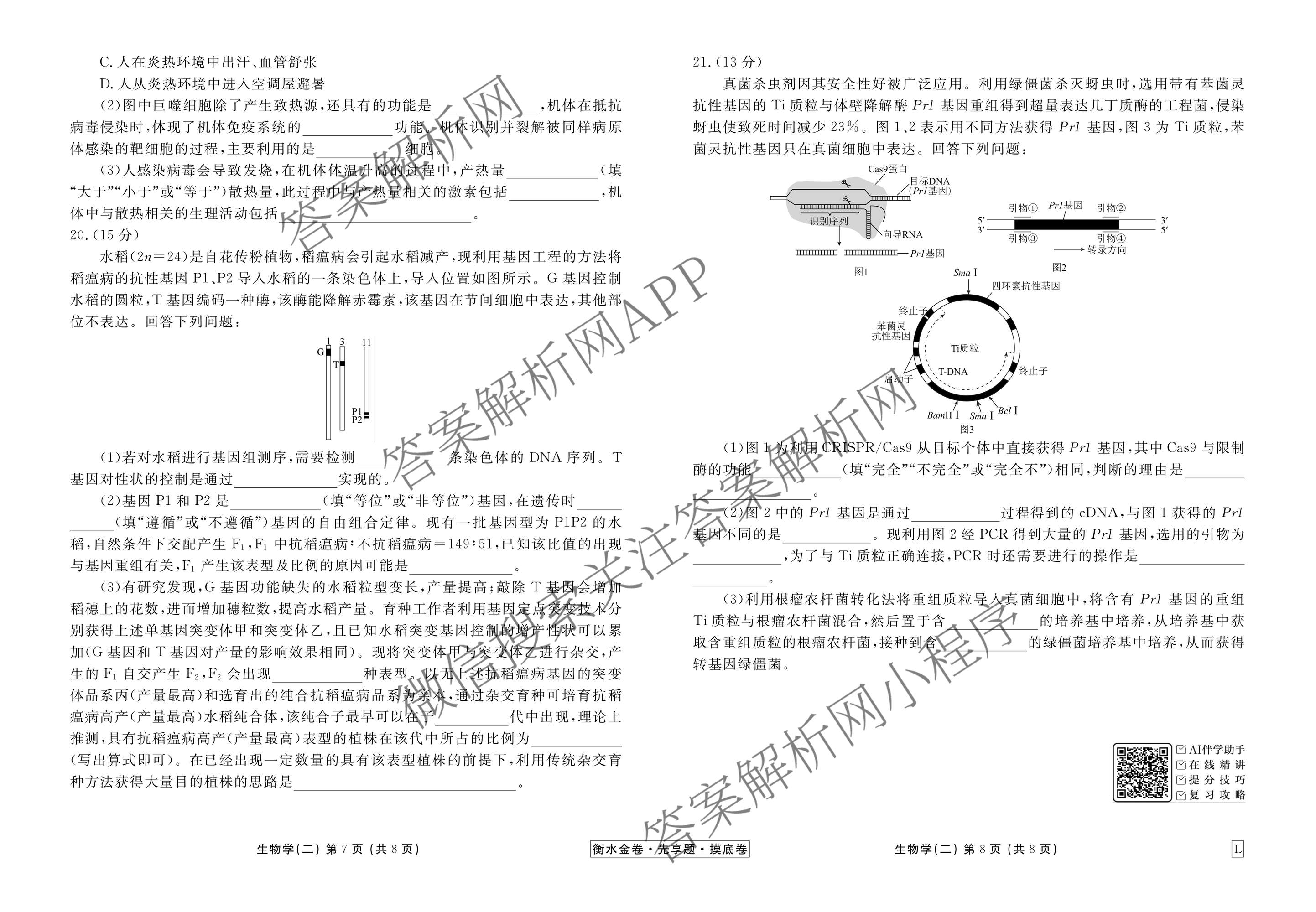 衡水金卷先享题·摸底卷2025-2026学年度高三一轮复习摸底测试卷(二)2生物(L)试题,目前衡水金卷先享题答案网已经汇总了衡水金卷先享题·摸底卷2025-2026学年度高三一轮复习摸底测试卷(二)2生物(L)试题的各科答案和试卷,获取更多衡水金卷先享题答案解析,请在关注本站。