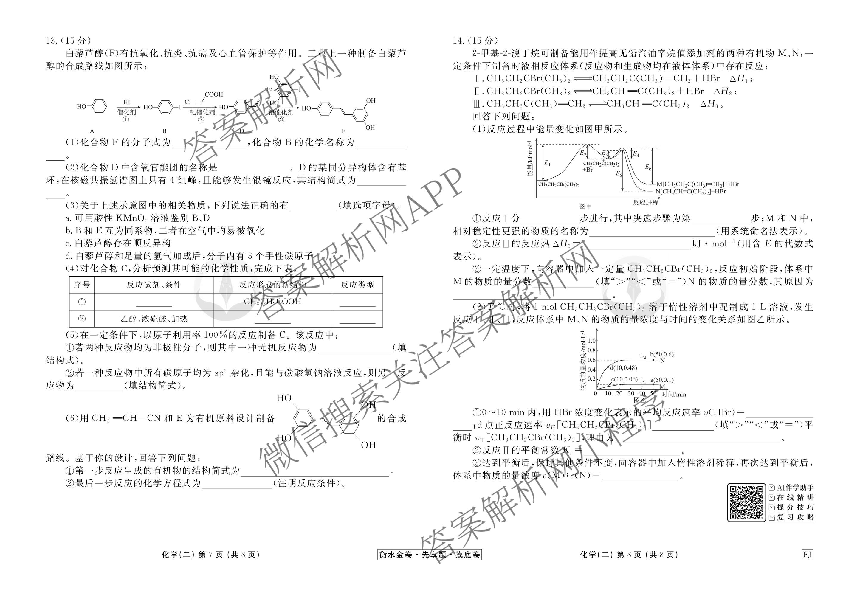- 2025~2026[高三]衡水金卷先享题·摸底卷学年度一轮复习摸底测试卷(二)2化学(AH)答案