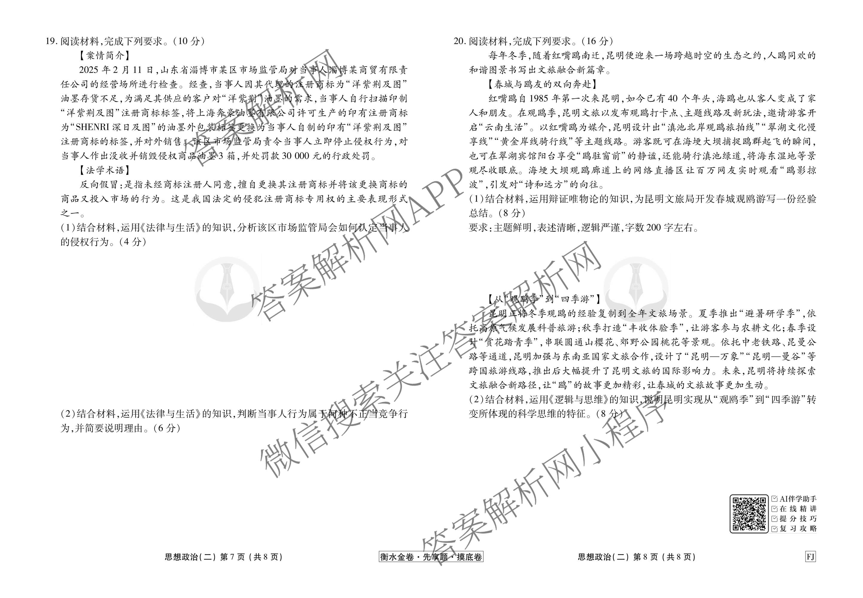 - 2025~2026高三(衡水金卷先享题)·摸底卷学年度一轮复习摸底测试卷(二)2政治(HJ)答案