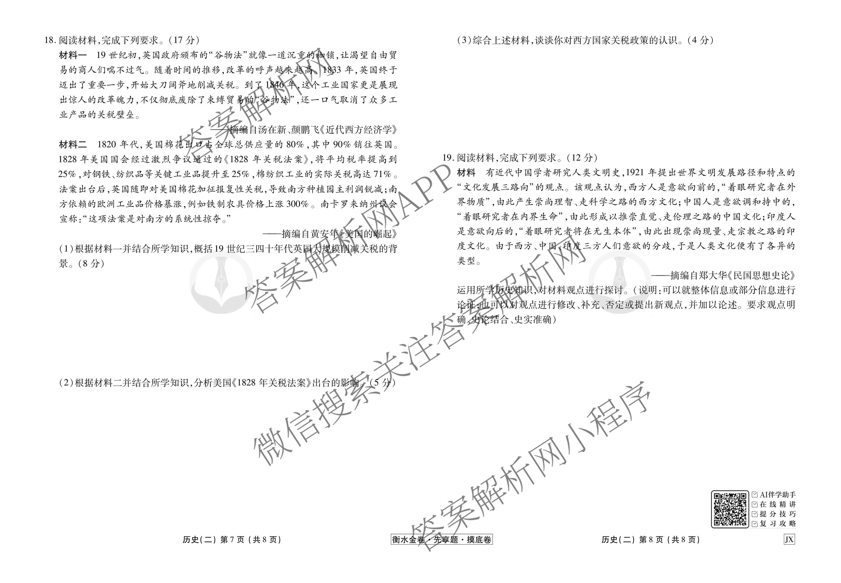 衡水金卷先享题·摸底卷2025-2026学年度高三一轮复习摸底测试卷(二)2历史(JX)试题,目前衡水金卷先享题答案网已经汇总了衡水金卷先享题·摸底卷2025-2026学年度高三一轮复习摸底测试卷(二)2历史(JX)试题的各科答案和试卷,获取更多衡水金卷先享题答案解析,请在关注本站。