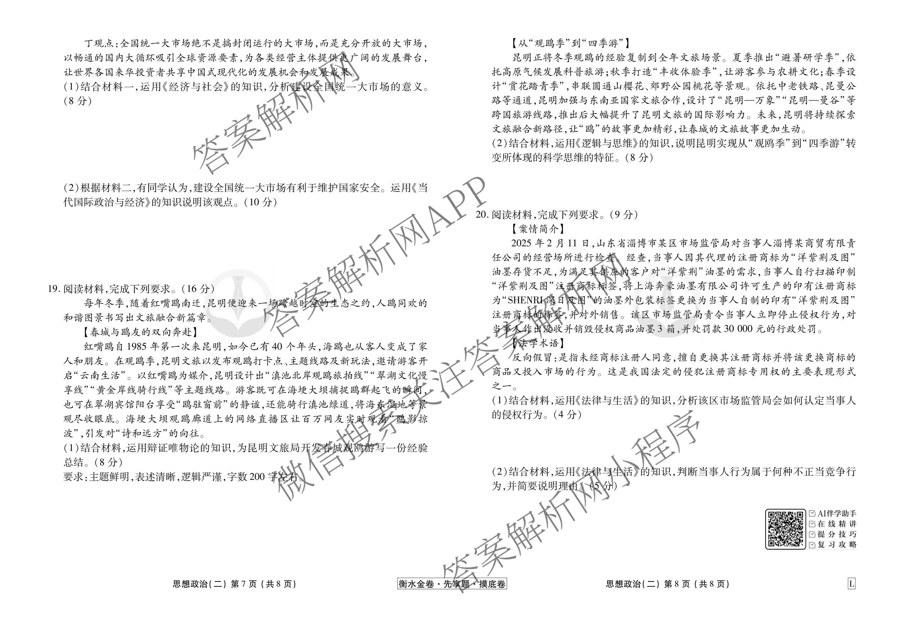 - 2025~2026高三(衡水金卷先享题)·摸底卷学年度一轮复习摸底测试卷(二)2政治(HJ)答案