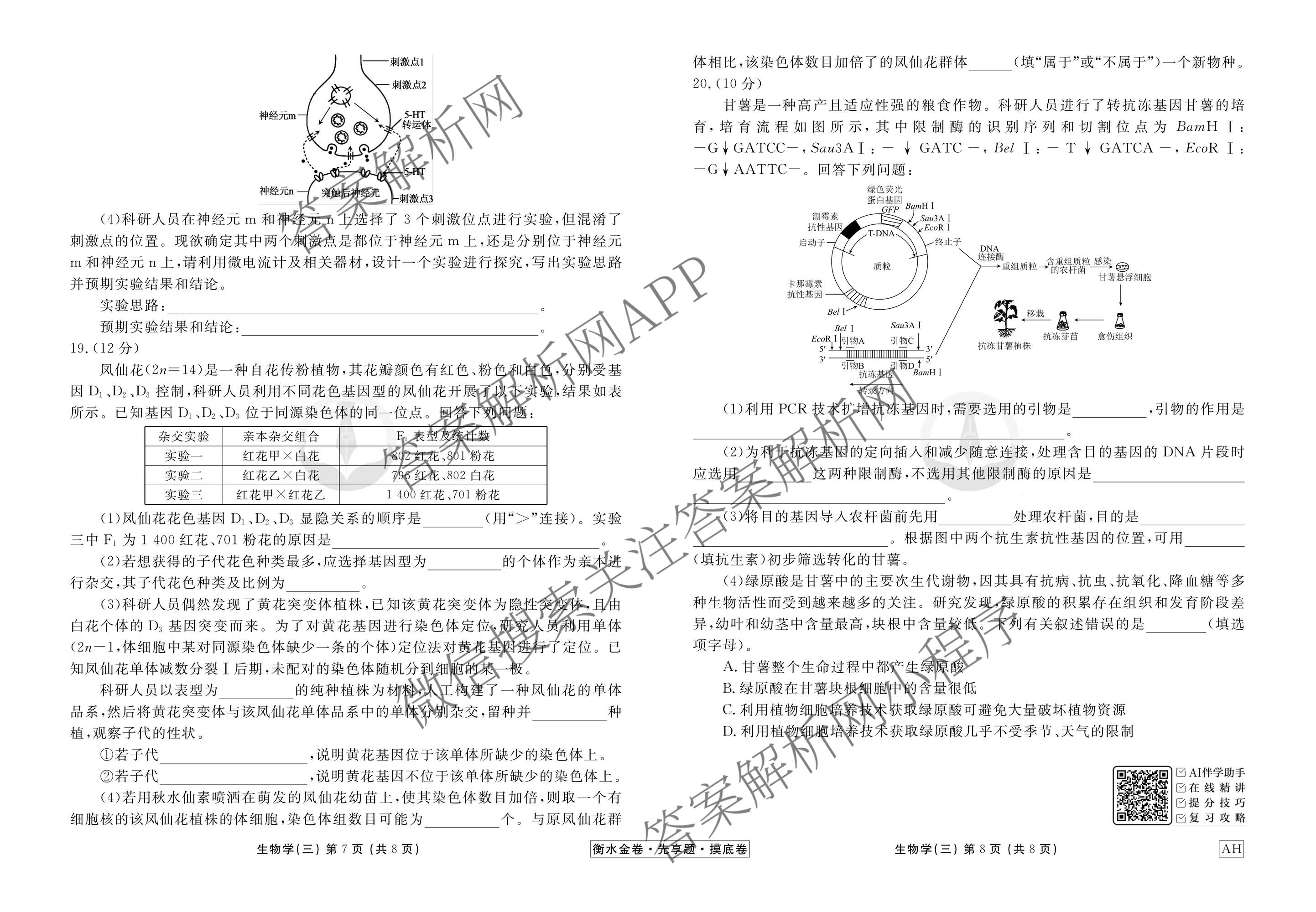 衡水金卷先享题·摸底卷2025-2026学年度高三一轮复习摸底测试卷(三)3生物(AH)试题,目前衡水金卷先享题答案网已经汇总了衡水金卷先享题·摸底卷2025-2026学年度高三一轮复习摸底测试卷(三)3生物(AH)试题的各科答案和试卷,获取更多衡水金卷先享题答案解析,请在关注本站。