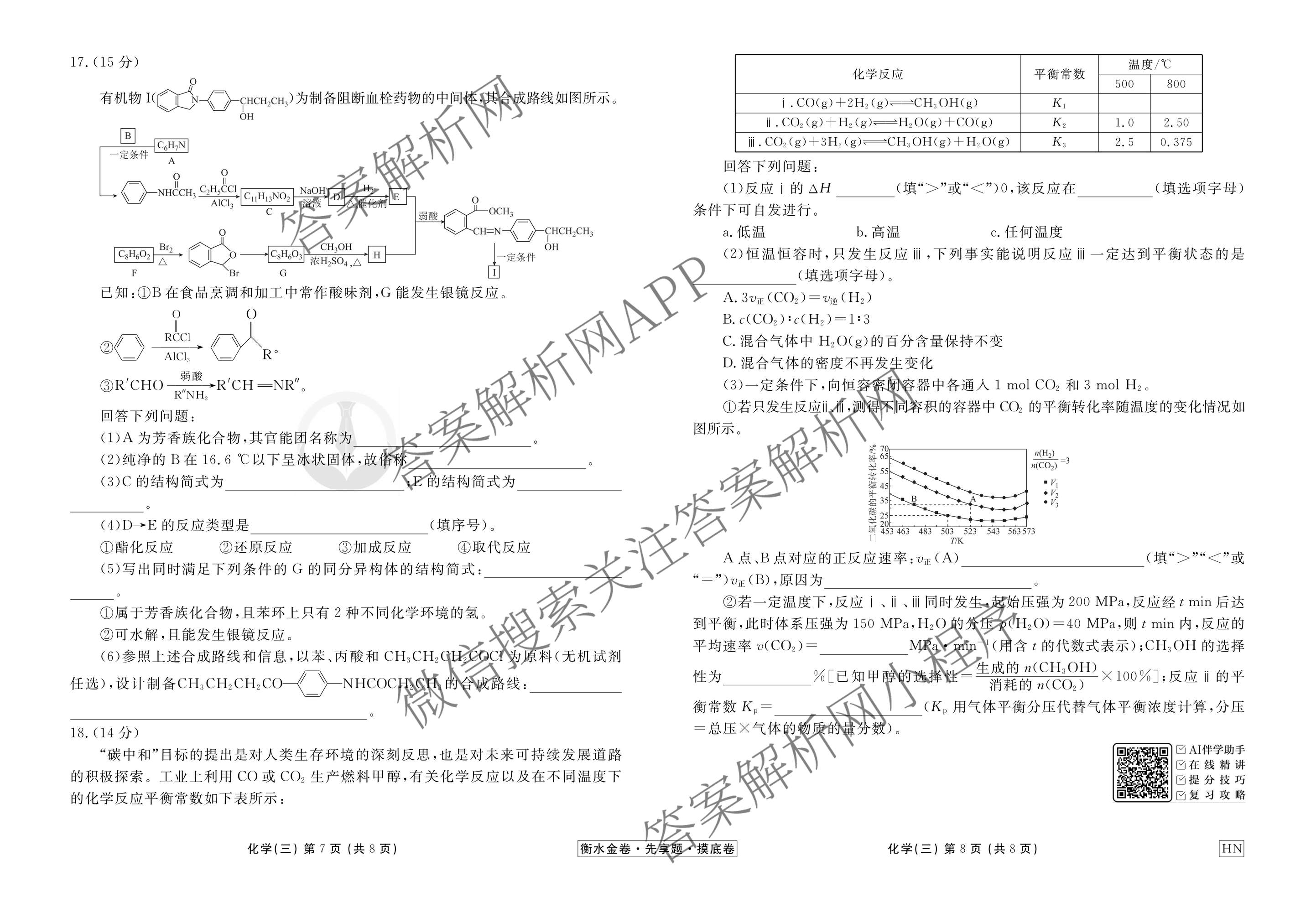 - [高三][衡水金卷先享题]·摸底卷2025~2026学年度一轮复习摸底测试卷(三)3化学(AH)答案