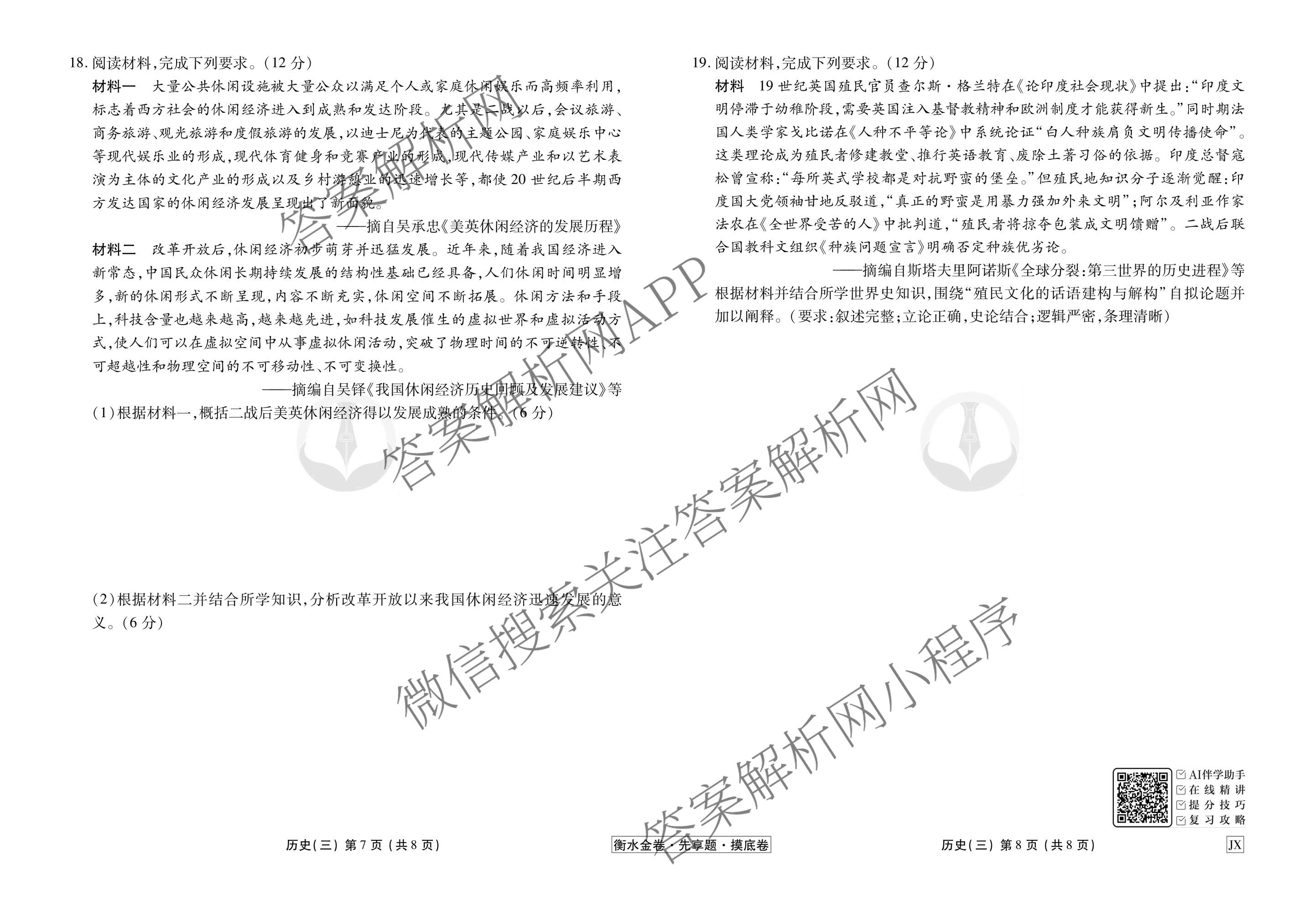 衡水金卷先享题·摸底卷2025-2026学年度高三一轮复习摸底测试卷(三)3历史(JX)试题,目前衡水金卷先享题答案网已经汇总了衡水金卷先享题·摸底卷2025-2026学年度高三一轮复习摸底测试卷(三)3历史(JX)试题的各科答案和试卷,获取更多衡水金卷先享题答案解析,请在关注本站。