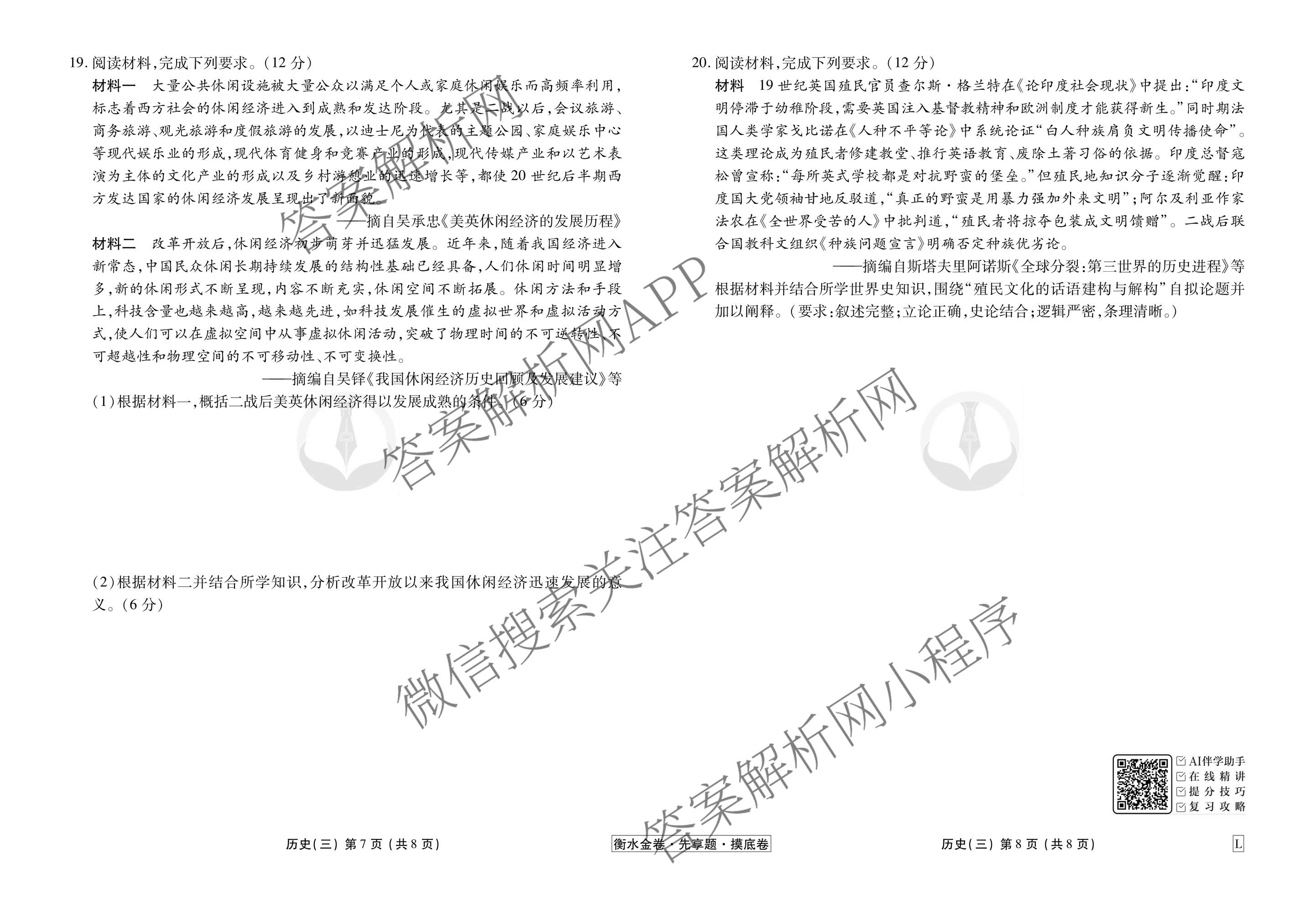 衡水金卷先享题·摸底卷2025-2026学年度高三一轮复习摸底测试卷(三)3历史(L)试题,目前衡水金卷先享题答案网已经汇总了衡水金卷先享题·摸底卷2025-2026学年度高三一轮复习摸底测试卷(三)3历史(L)试题的各科答案和试卷,获取更多衡水金卷先享题答案解析,请在关注本站。