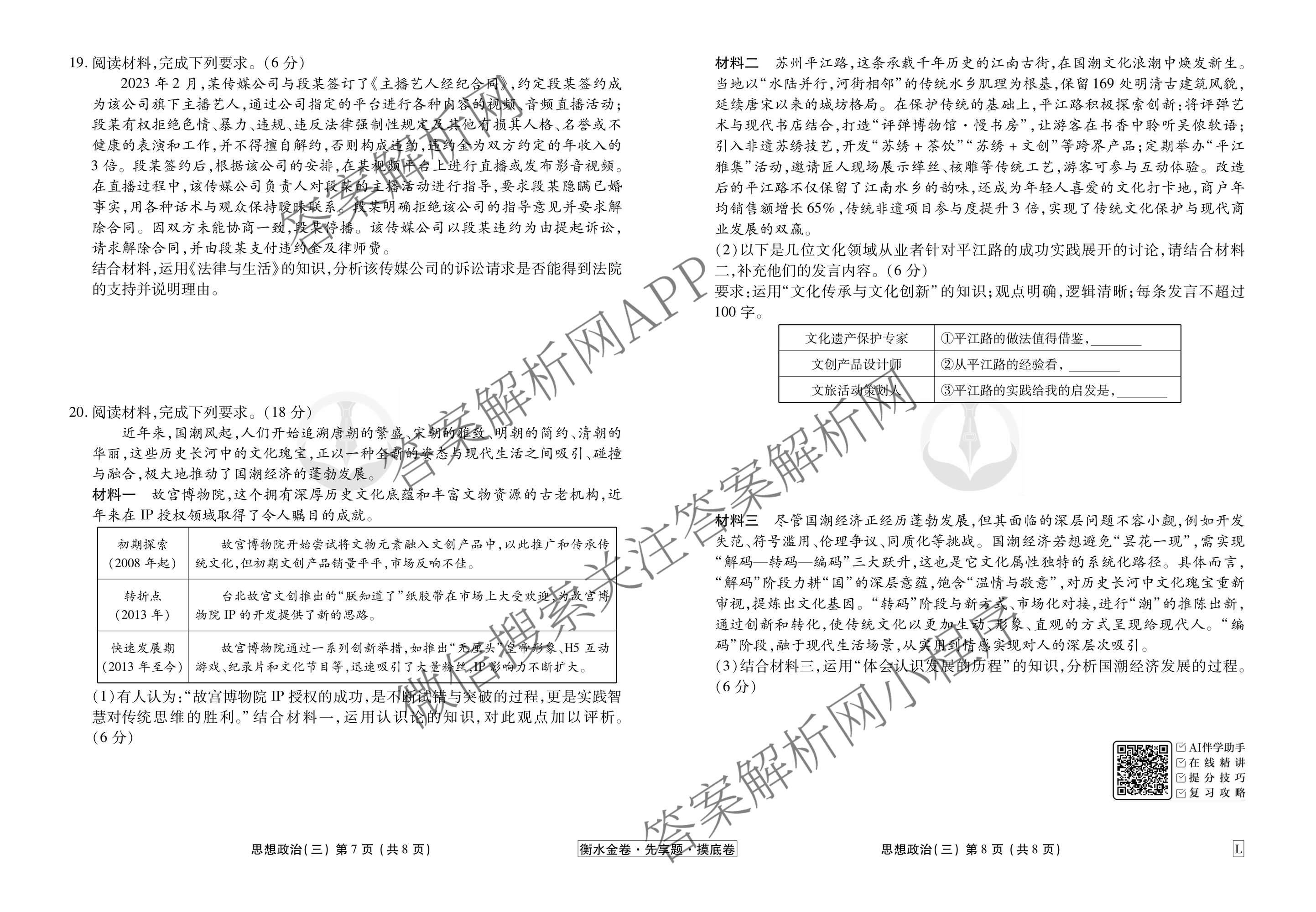 - 2025~2026[高三](衡水金卷先享题)·摸底卷学年度一轮复习摸底测试卷(三)3政治(GD)答案