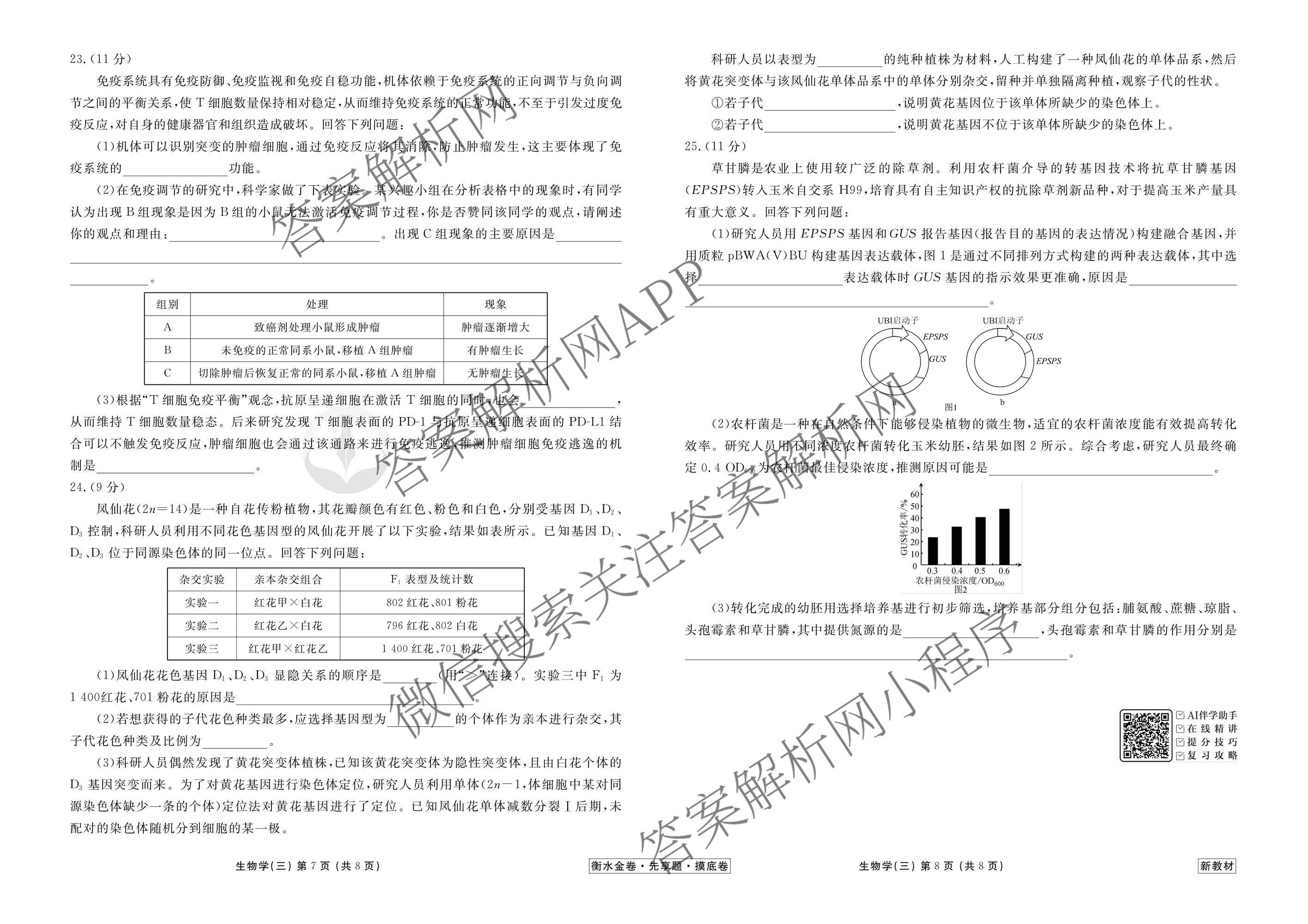 衡水金卷先享题·摸底卷2025-2026学年度高三一轮复习摸底测试卷(三)3生物(新教材)试题,目前衡水金卷先享题答案网已经汇总了衡水金卷先享题·摸底卷2025-2026学年度高三一轮复习摸底测试卷(三)3生物(新教材)试题的各科答案和试卷,获取更多衡水金卷先享题答案解析,请在关注本站。