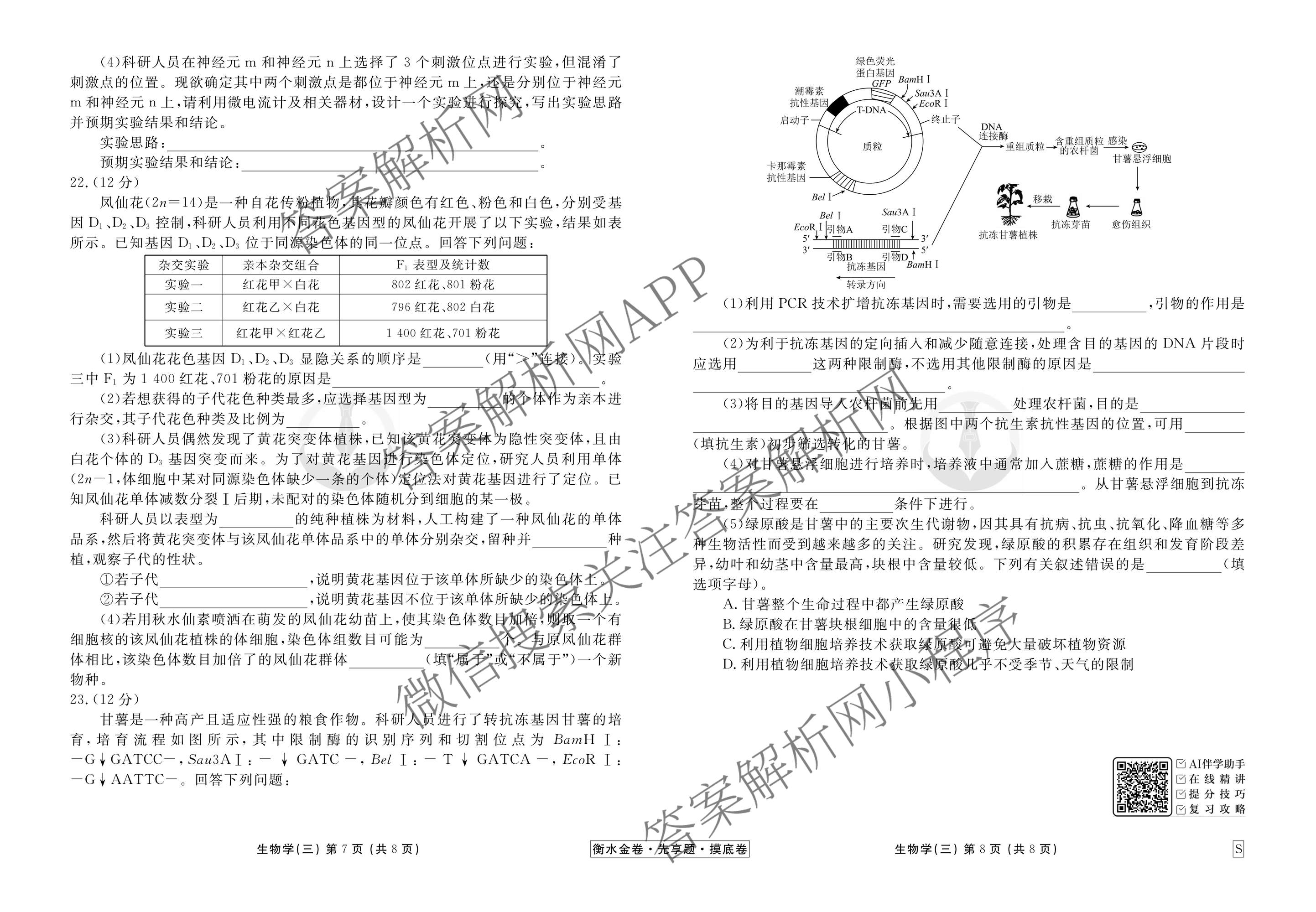 衡水金卷先享题·摸底卷2025-2026学年度高三一轮复习摸底测试卷(三)3生物(S)试题,目前衡水金卷先享题答案网已经汇总了衡水金卷先享题·摸底卷2025-2026学年度高三一轮复习摸底测试卷(三)3生物(S)试题的各科答案和试卷,获取更多衡水金卷先享题答案解析,请在关注本站。