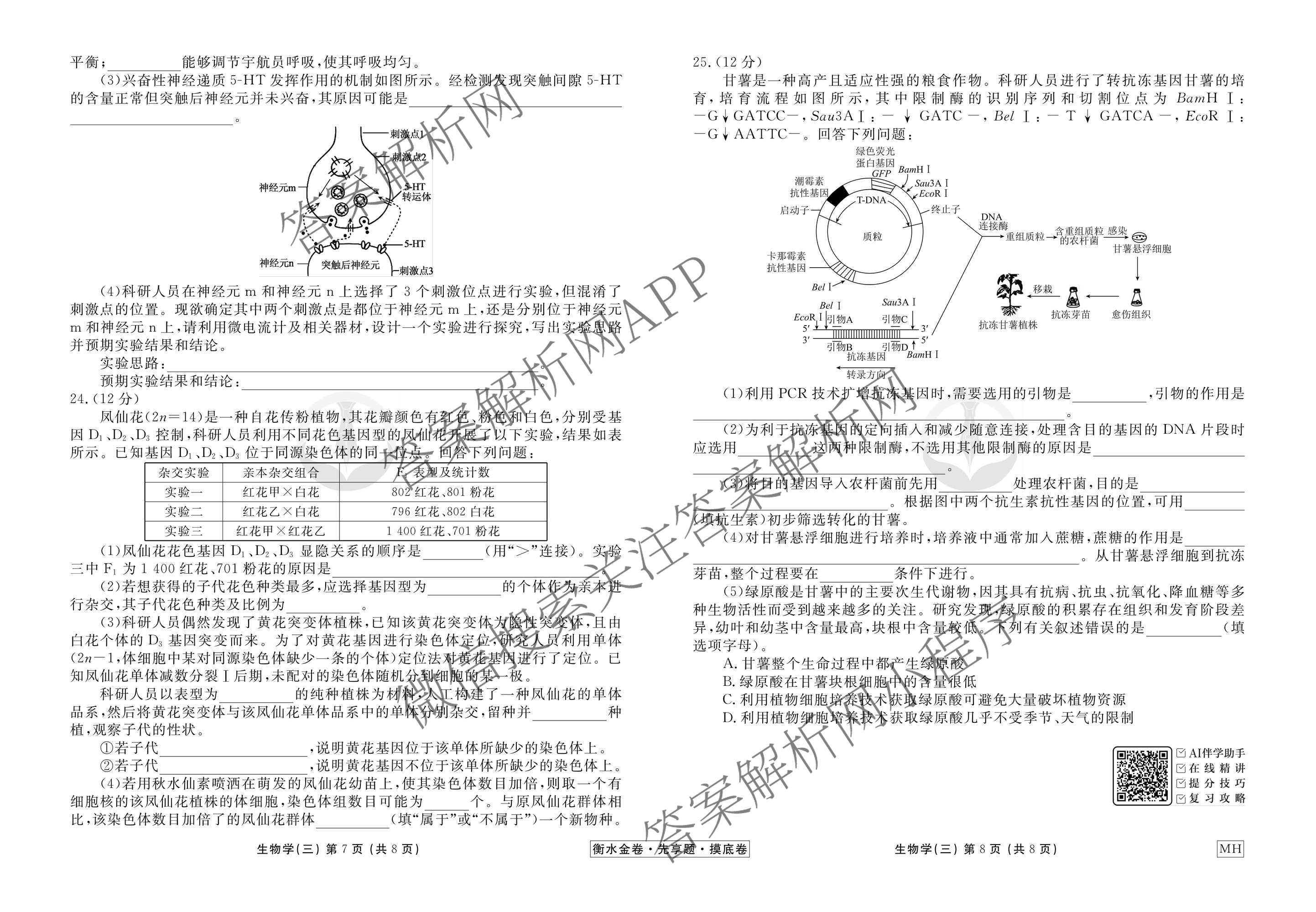 衡水金卷先享题·摸底卷2025-2026学年度高三一轮复习摸底测试卷(三)3生物(MH)试题,目前衡水金卷先享题答案网已经汇总了衡水金卷先享题·摸底卷2025-2026学年度高三一轮复习摸底测试卷(三)3生物(MH)试题的各科答案和试卷,获取更多衡水金卷先享题答案解析,请在关注本站。