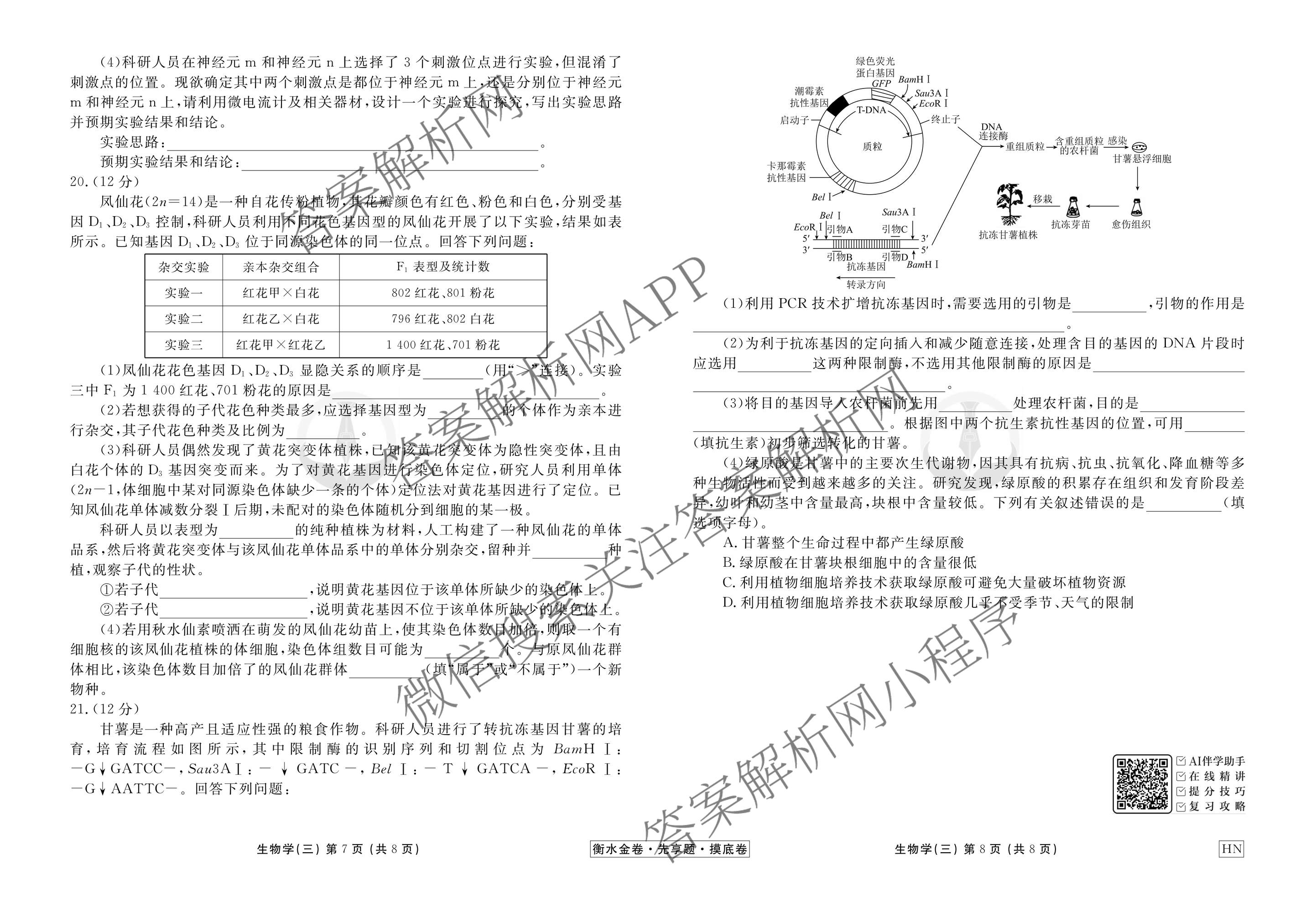 衡水金卷先享题·摸底卷2025-2026学年度高三一轮复习摸底测试卷(三)3生物(HN)试题,目前衡水金卷先享题答案网已经汇总了衡水金卷先享题·摸底卷2025-2026学年度高三一轮复习摸底测试卷(三)3生物(HN)试题的各科答案和试卷,获取更多衡水金卷先享题答案解析,请在关注本站。