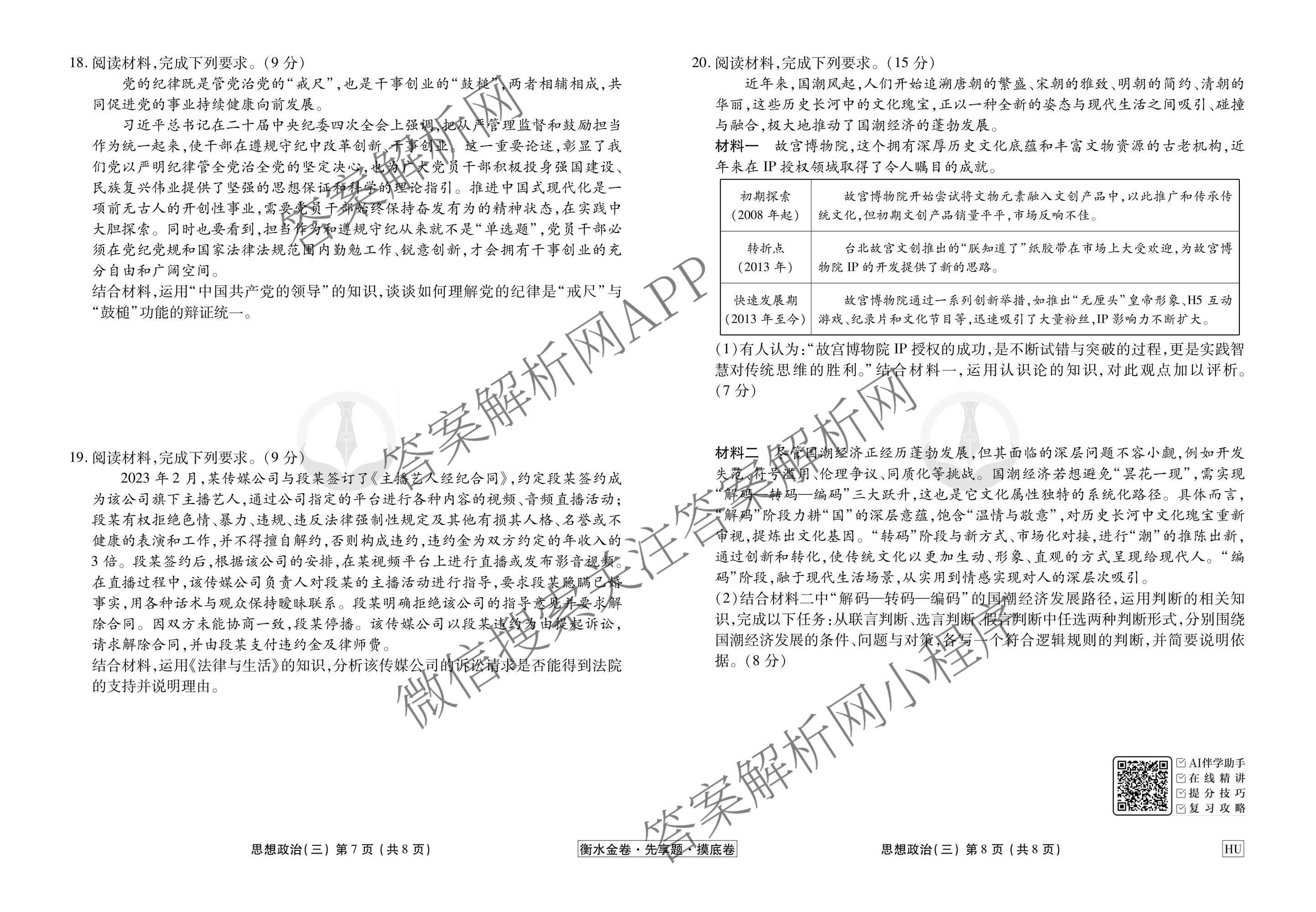 衡水金卷先享题·摸底卷2025-2026学年度高三一轮复习摸底测试卷(三)3政治(HU)试题,目前衡水金卷先享题答案网已经汇总了衡水金卷先享题·摸底卷2025-2026学年度高三一轮复习摸底测试卷(三)3政治(HU)试题的各科答案和试卷,获取更多衡水金卷先享题答案解析,请在关注本站。