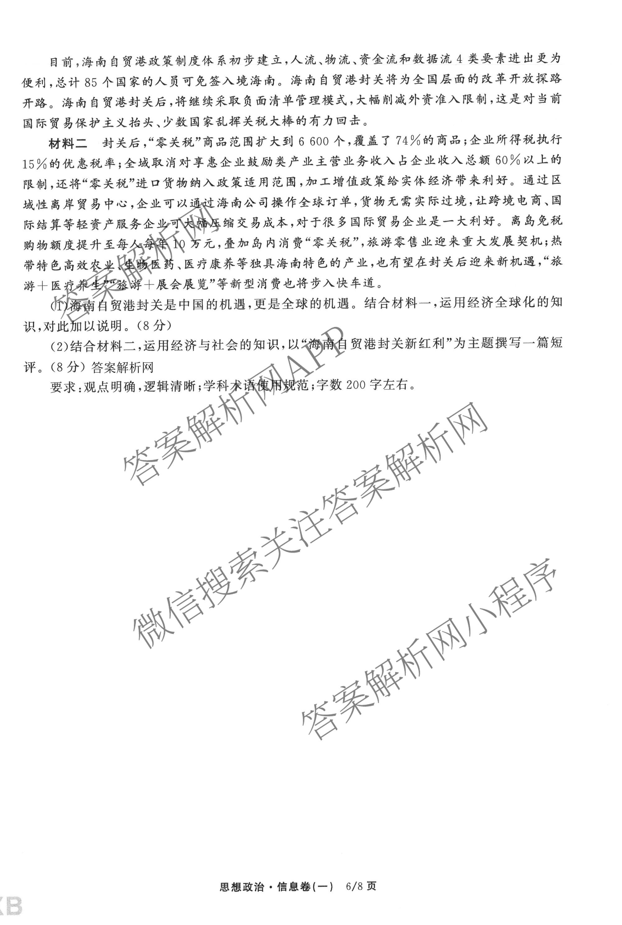 - 天舟高考[衡中同卷]2026年普通高中学业水平选择性考试模拟信息卷(一)1政治(河南版)答案