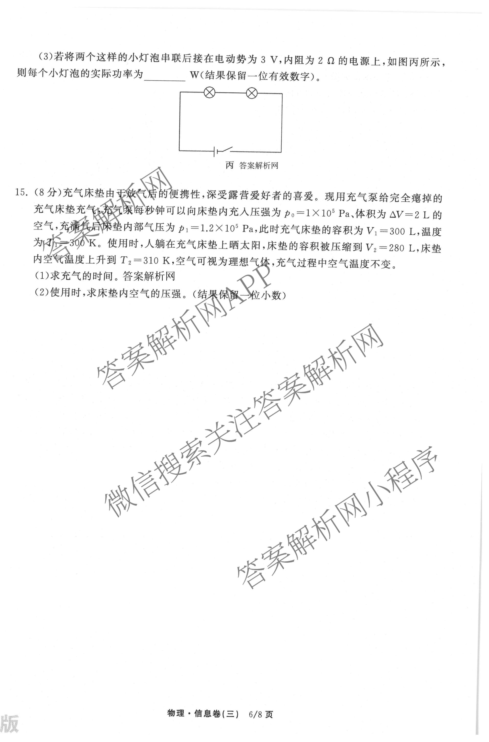 - [高三]天舟高考衡中同卷2026年普通高中学业水平选择性考试模拟信息卷(三)3物理(无字母)试题