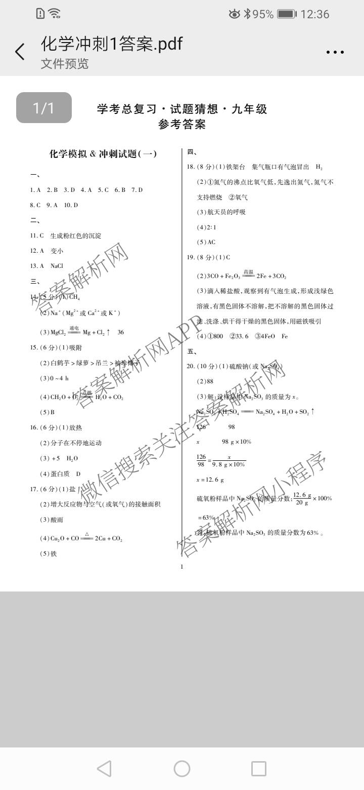 2024江西学考总复习·猜想·九年级 化学模拟&冲刺(一)答案,目前衡水金卷先享题答案网已经汇总了2024江西学考总复习·猜想·九年级 化学模拟&冲刺(一)答案的各科答案和试卷,获取更多学考总复习·试题猜想答案解析,请在关注本站。