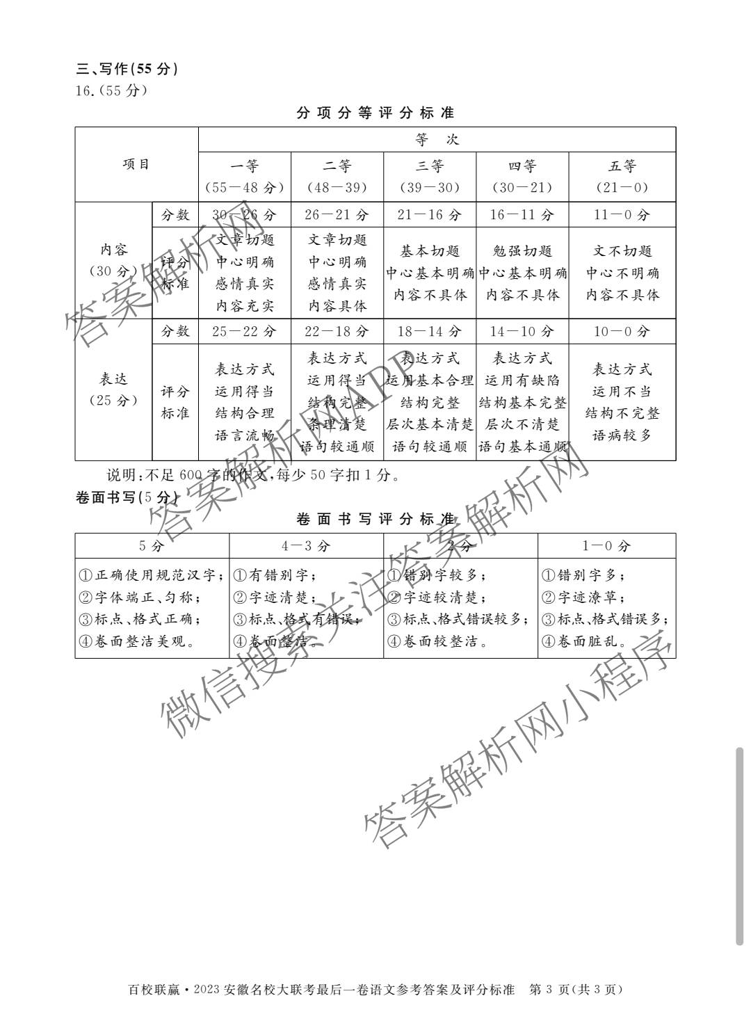 百校联赢·2023安徽名校大联考最后一卷语文答案,目前衡水金卷先享题答案网已经汇总了百校联赢·2023安徽名校大联考最后一卷语文答案的各科答案和试卷,获取更多百校联赢答案解析,请在关注本站。