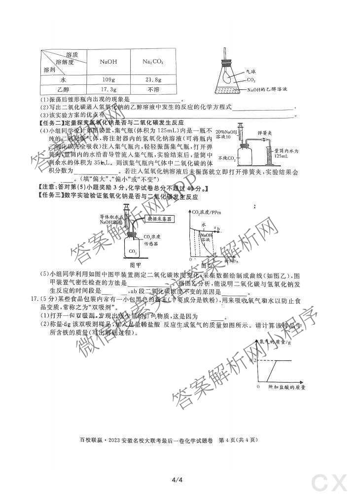 - (百校联赢)·2023安徽名校大联考最后一卷化学答案