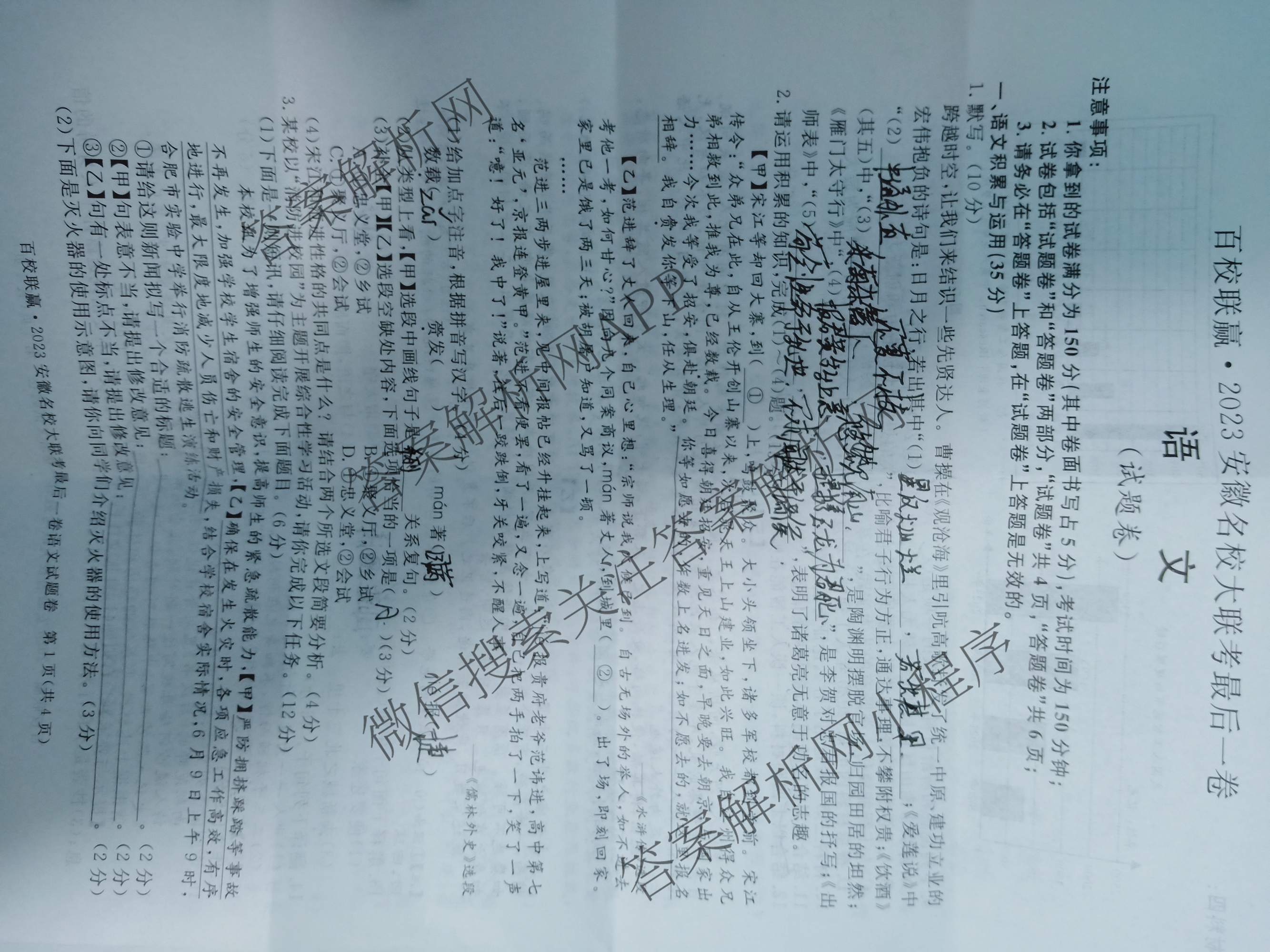 九年级[百校联赢]·2023安徽名校大联考最后一卷语文试题