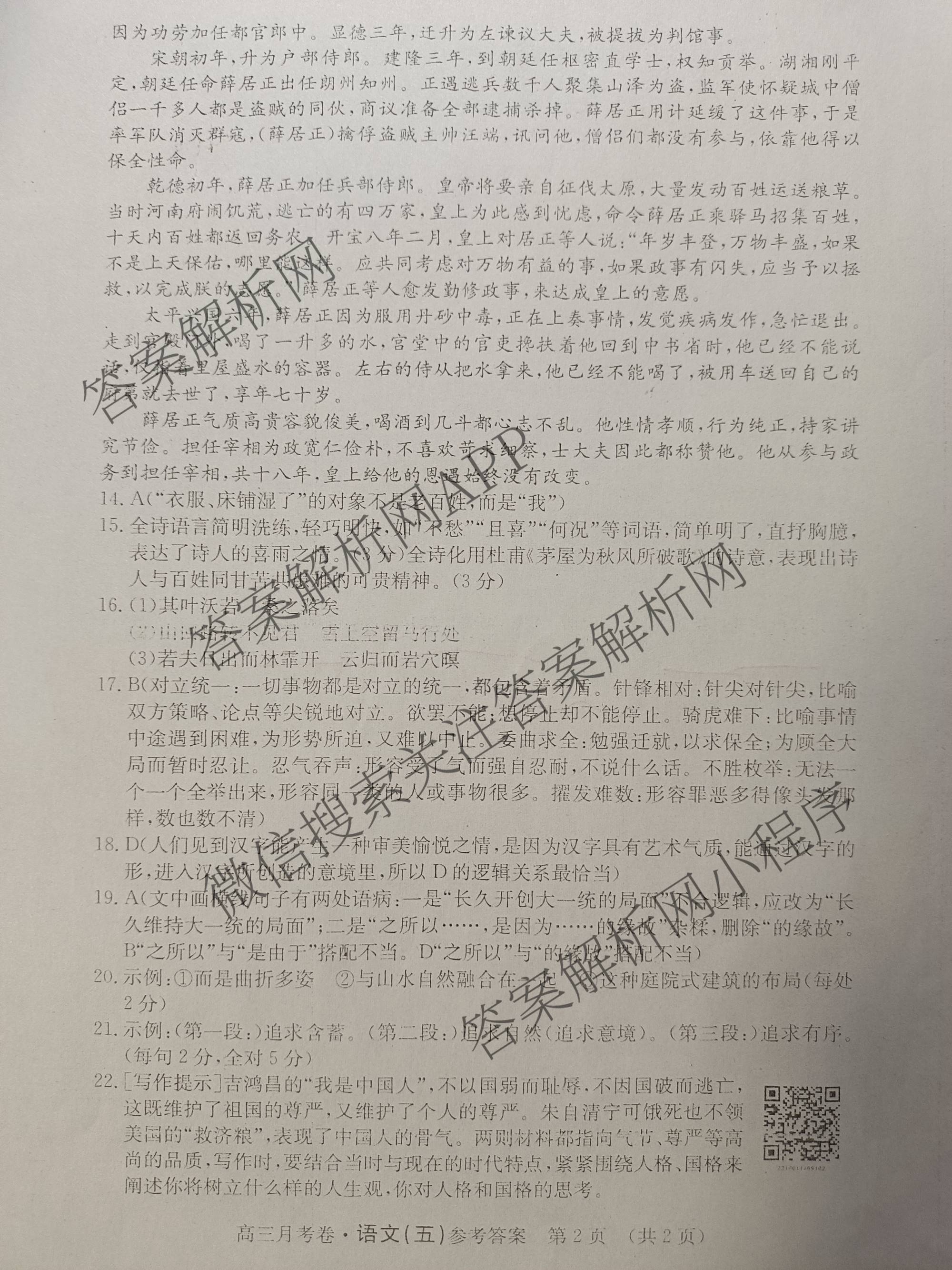 - (高三)2022月考卷(五)语文答案