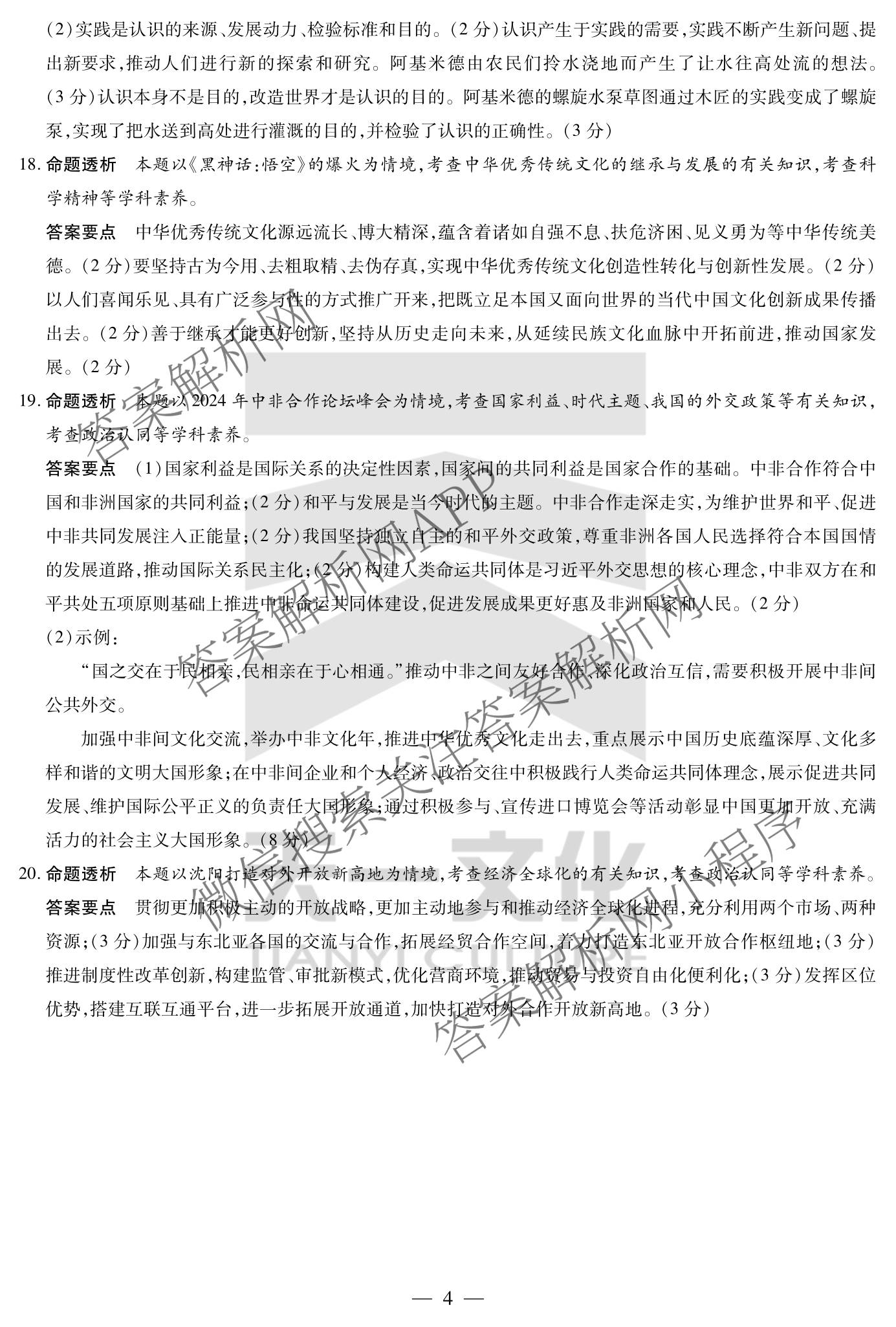 - 2024-2025(高二)(天一大联考)·学年(上)年级期末考试政治(A卷)答案
