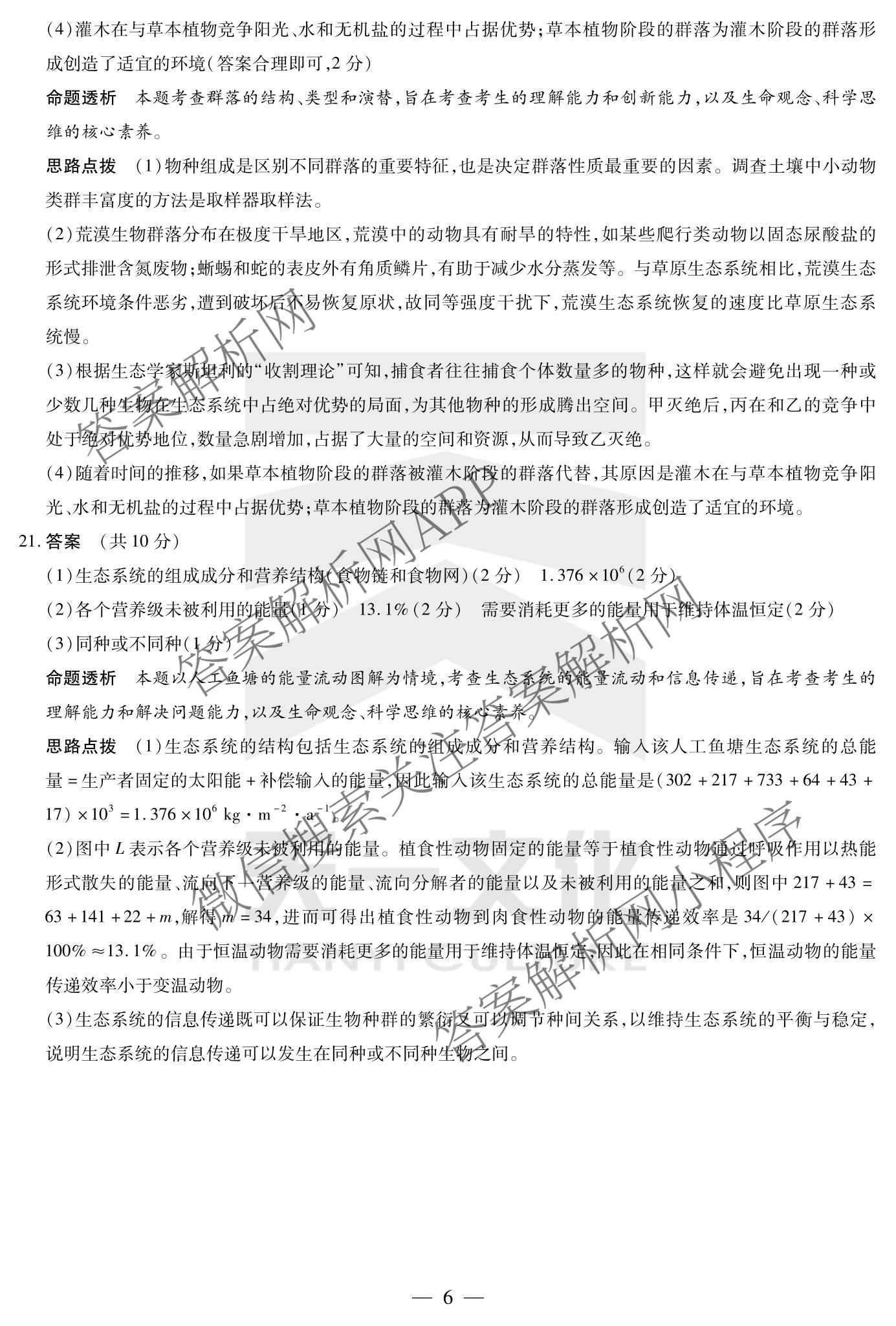 - 2024-2025(高二)天一大联考学年(上)年级期末考试生物答案