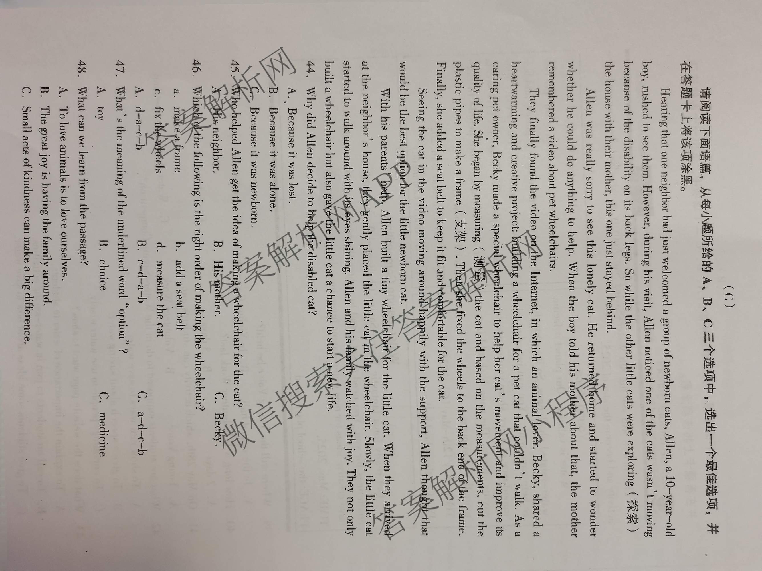 2025年山西省初中学业水平学情调研测试卷英语试题,目前衡水金卷先享题答案网已经汇总了2025年山西省初中学业水平学情调研测试卷英语试题的各科答案和试卷,获取更多山西省初中学业水平学情调研测试卷答案解析,请在关注本站。
