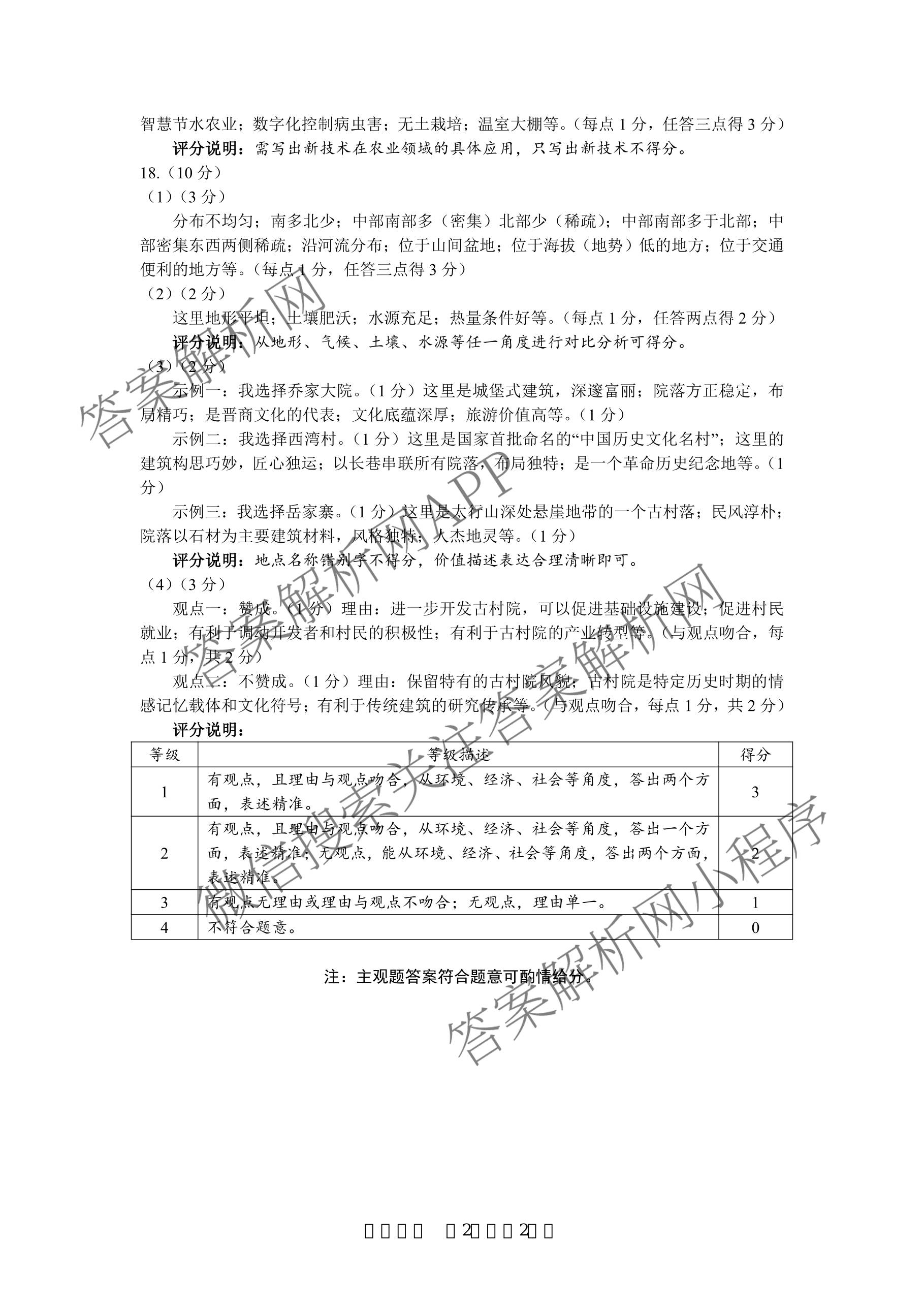2025年[山西省初中学业水平学情调研测试卷]地理答案