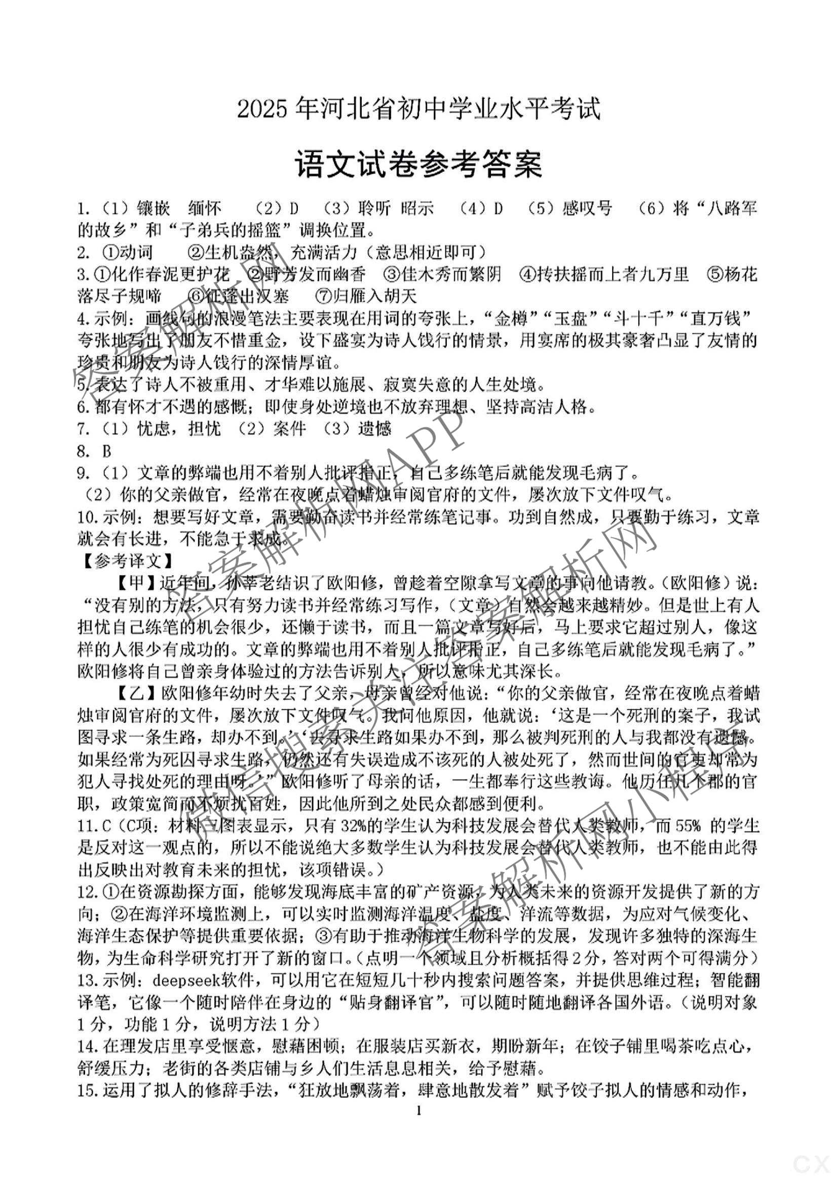 [九年级]2025河北省初中学业水平考试(12)语文答案