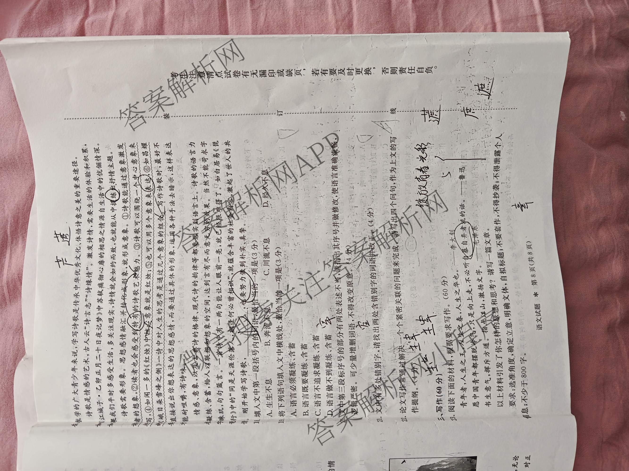 2028届普通高等学校招生全国统一考试·青桐鸣大联考(高一)(10.14-15)语文(*)试题,目前衡水金卷先享题答案网已经汇总了2028届普通高等学校招生全国统一考试·青桐鸣大联考(高一)(10.14-15)语文(*)试题的各科答案和试卷,获取更多桐鸣卷答案解析,请在关注本站。