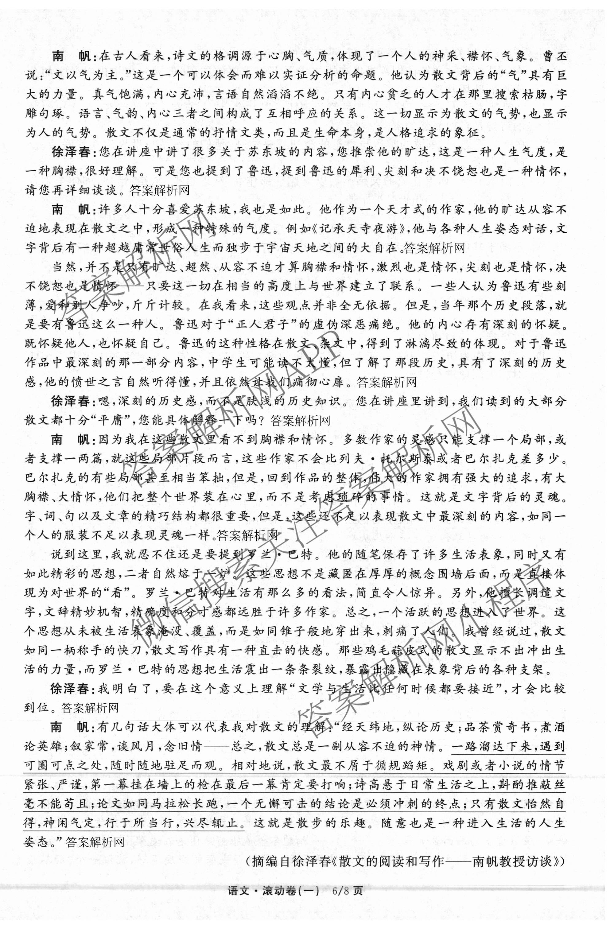 - (高三)[衡中同卷]2025-2026学年度复习滚动卷(一)1语文答案