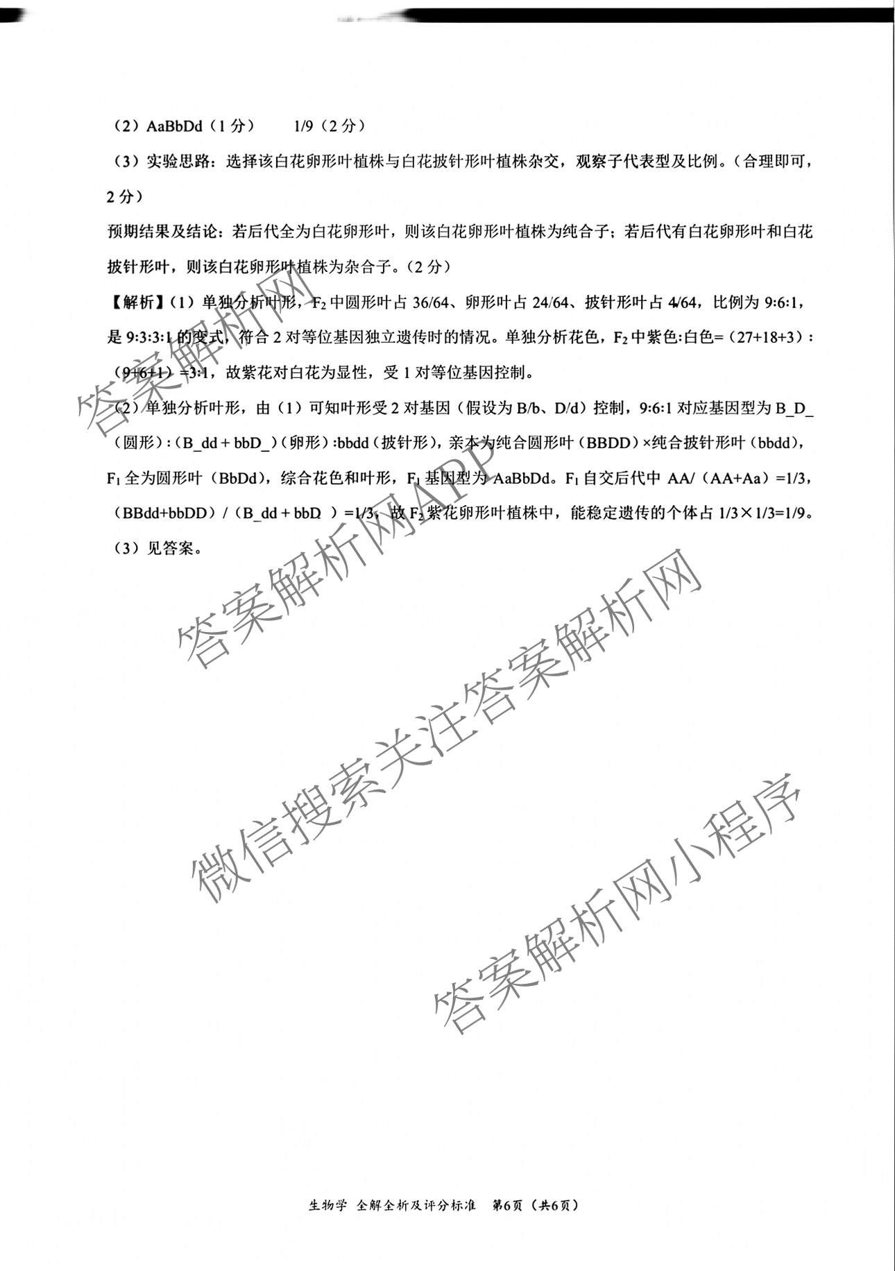 - [高三](学科网)2026届11月大联考生物(新高考卷版本1)答案