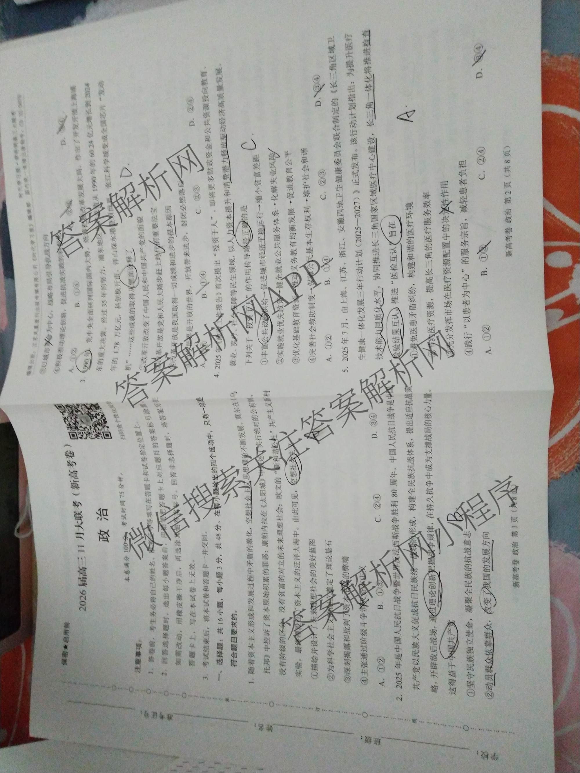 学科网2026届高三11月大联考政治(新高考卷版本1)试题,目前衡水金卷先享题答案网已经汇总了学科网2026届高三11月大联考政治(新高考卷版本1)试题的各科答案和试卷,获取更多学科网答案解析,请在关注本站。