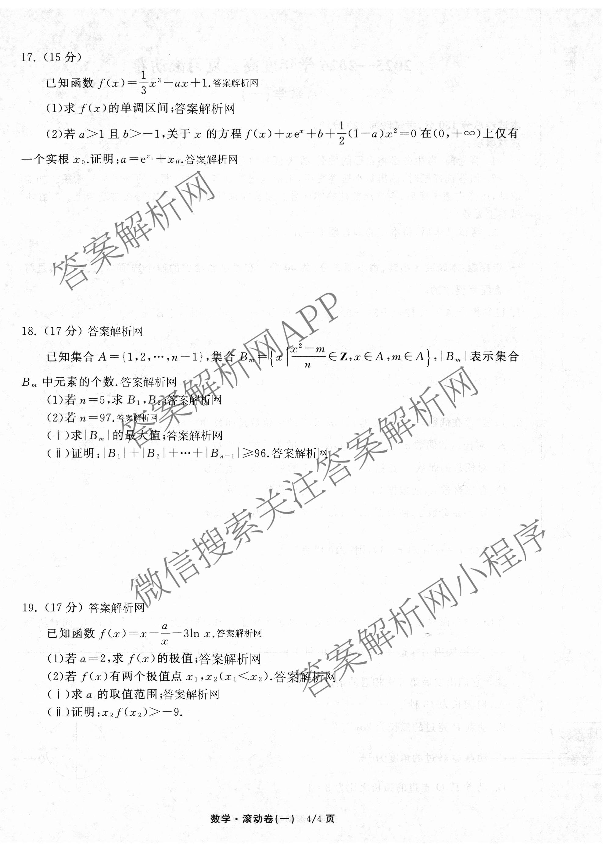 - (高三)(衡中同卷)·2025~2026学年度复习滚动卷(一)1数学试题