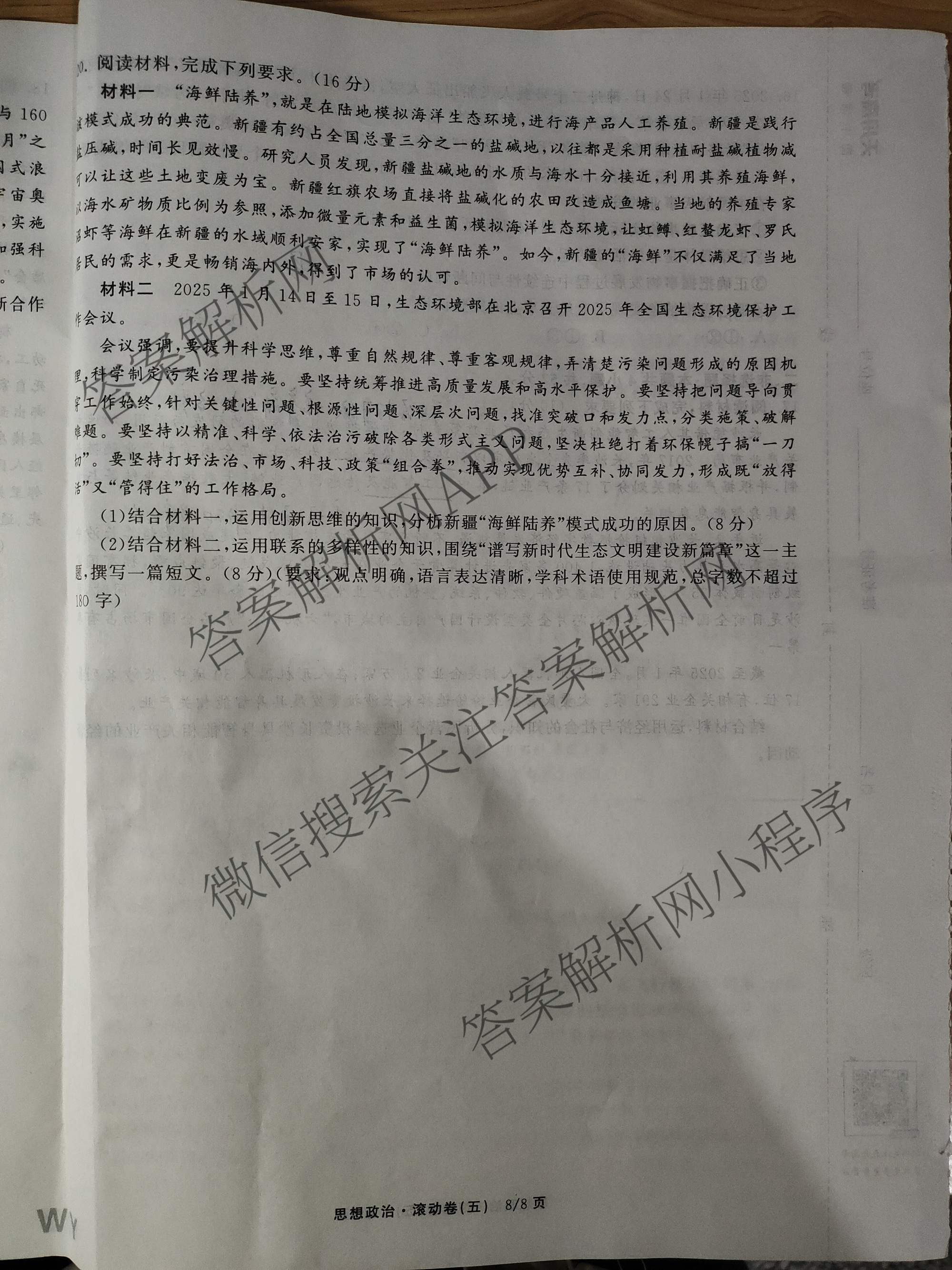 (高三)[衡中同卷]2025-2026学年度复习滚动卷(五)5政治(WY)试题