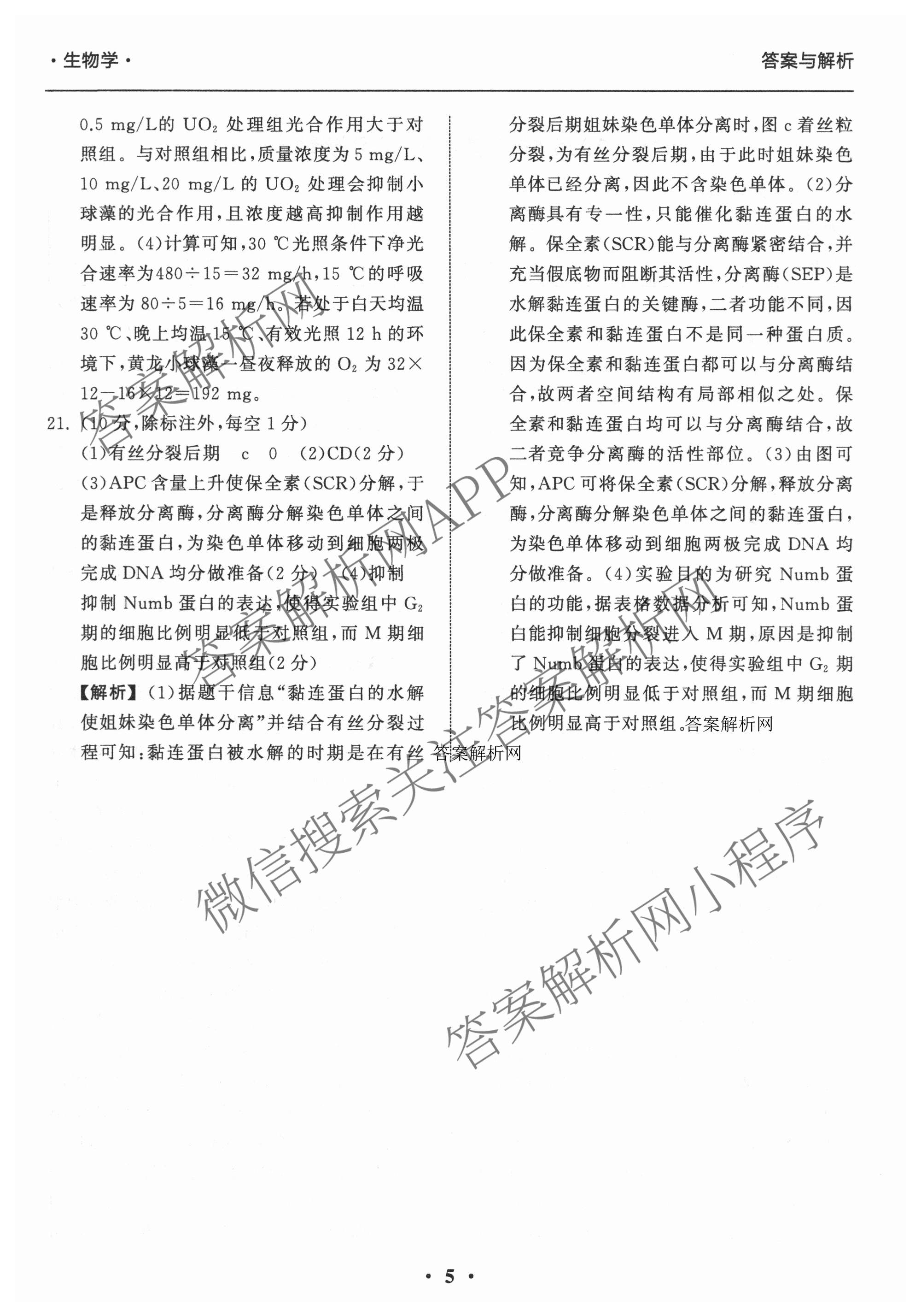 - 2025~2026[高三]衡中同卷学年度复习滚动卷(一)1生物答案