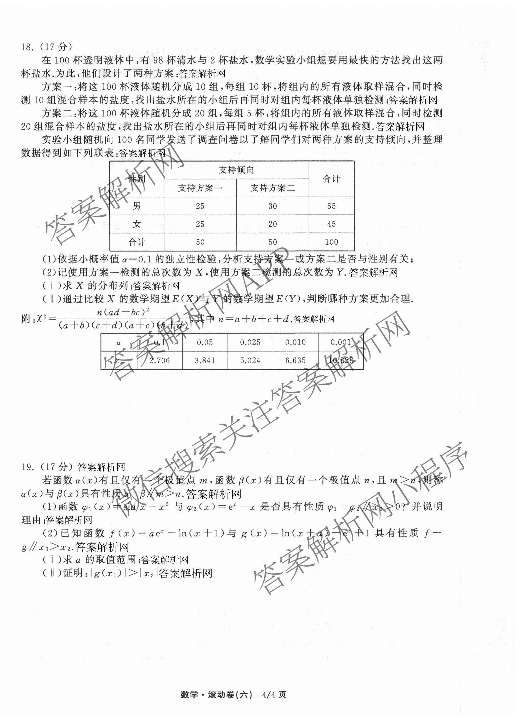 - (高三)(衡中同卷)·2025~2026学年度复习滚动卷(六)6数学答案