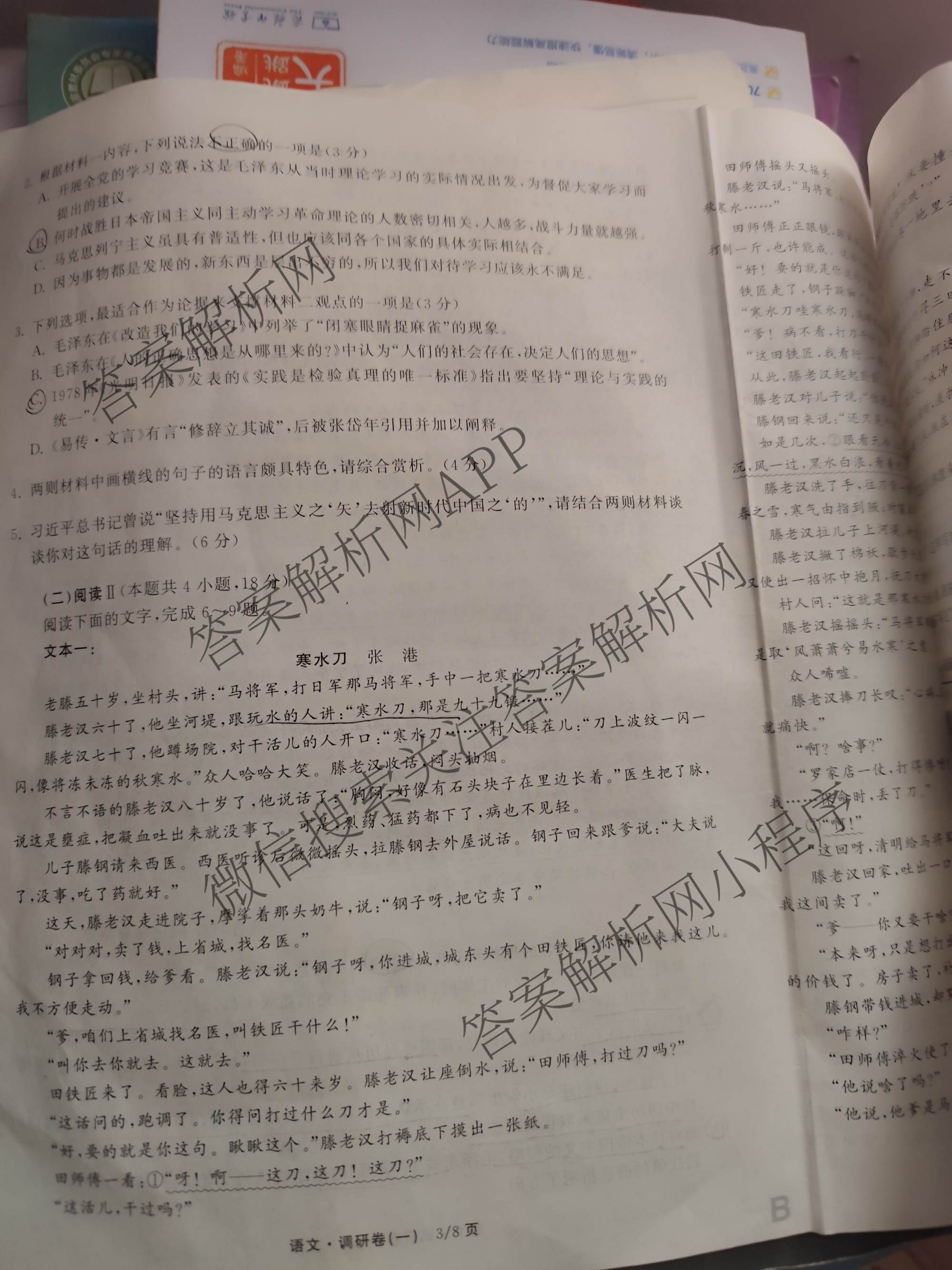 - (高三)天舟高考衡中同卷·2026年普通高等学校招生全国统一考试模拟调研卷(一)1语文(B)试题